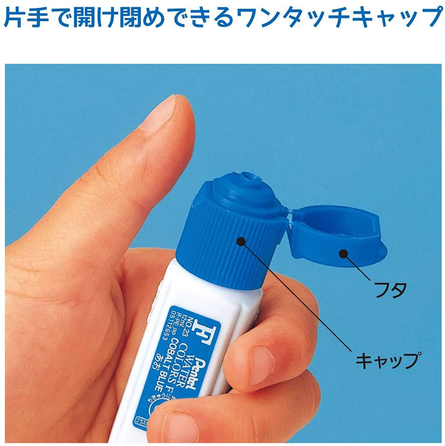 片手で開け閉めできるワンタッチキャップの水彩えのぐ