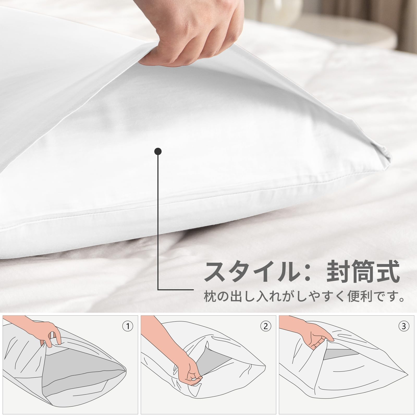 【仕様】サイズ:ピローケースは標準サイズ43×63cmの枕に適用します。重量:(約)90g。表面:サテン織りです。包装:封筒式。選べる13色、カラーが豊富でシンプルな無地ですので、どんな寝室にもマッチします。