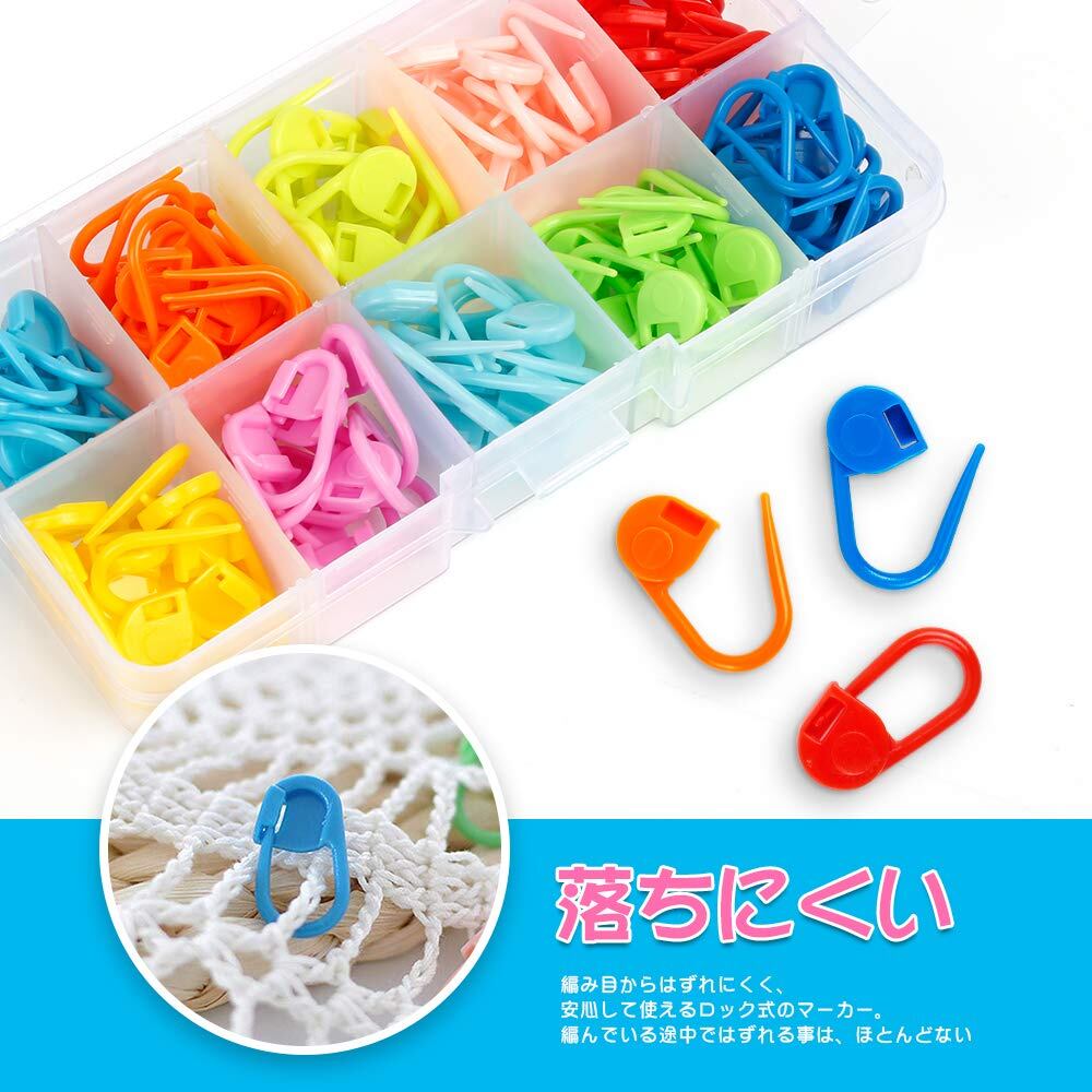 編み物用かぎ針編みのマーカーセット:120個入りプラスチック製ステッチマーカー(10色×各12個)