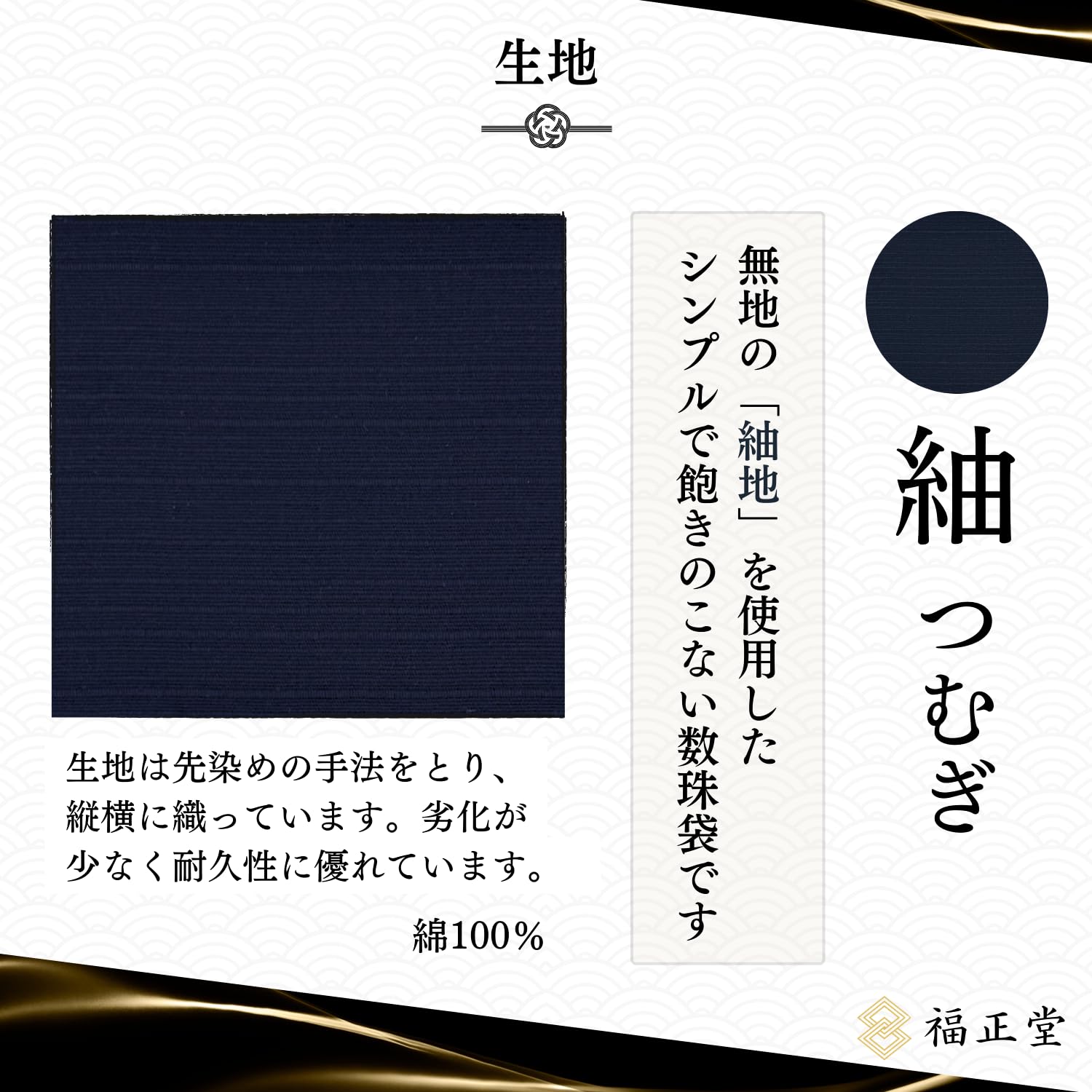 福正堂 数珠入れ 【京都制作 葬祭プロの推奨】 数珠袋 念珠袋 念珠入れ 男性用 女性用 数珠ケース (03 紬 黒紺)