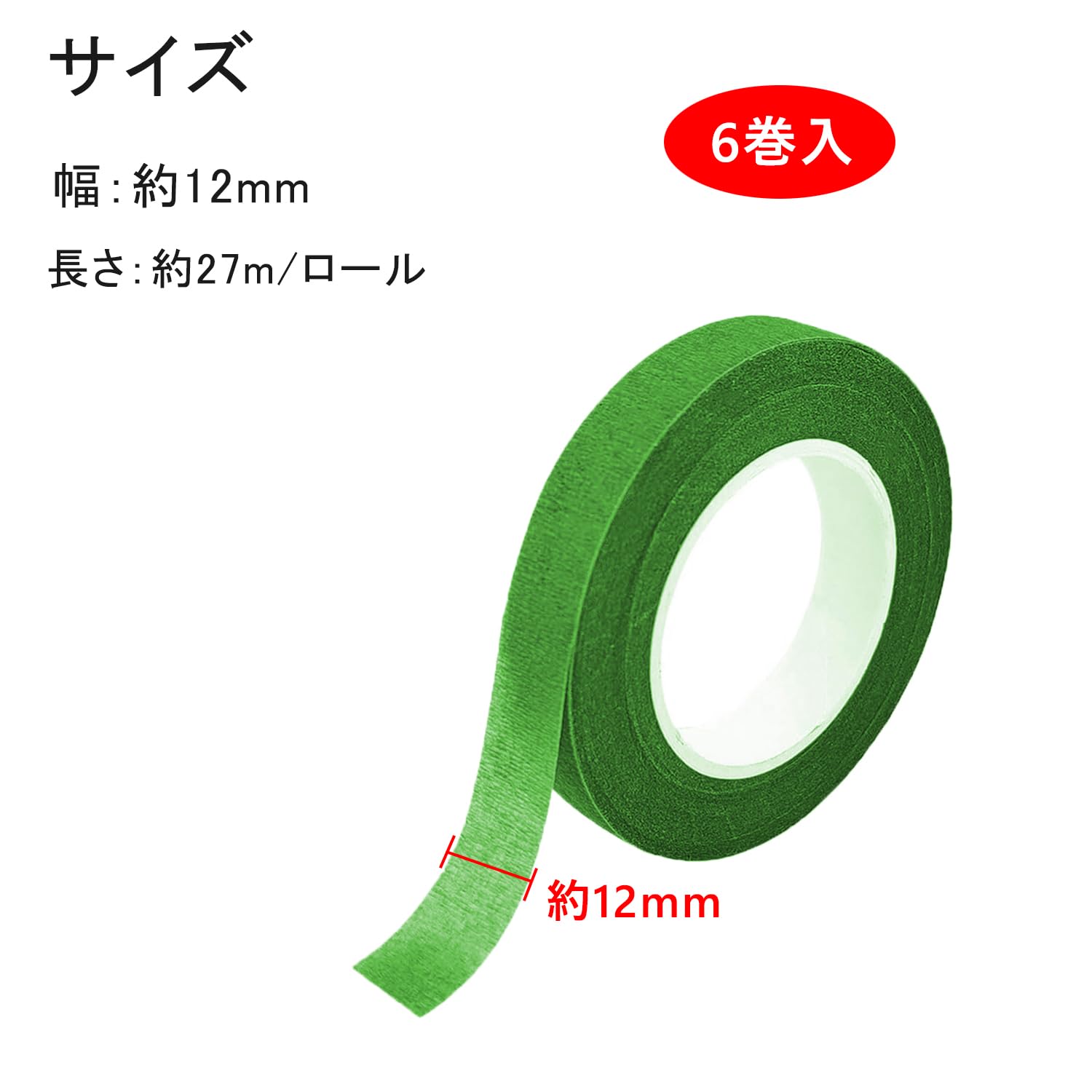 フローラテープ 浅い緑 6巻入 造花テープ フラワーテープ フラワーアレンジメントキット 花 製作 作り用テープ 花屋 ブーケ 花束 茎巻き用 DIY 手芸 材料 花材 アクセサリー ライトグリーン