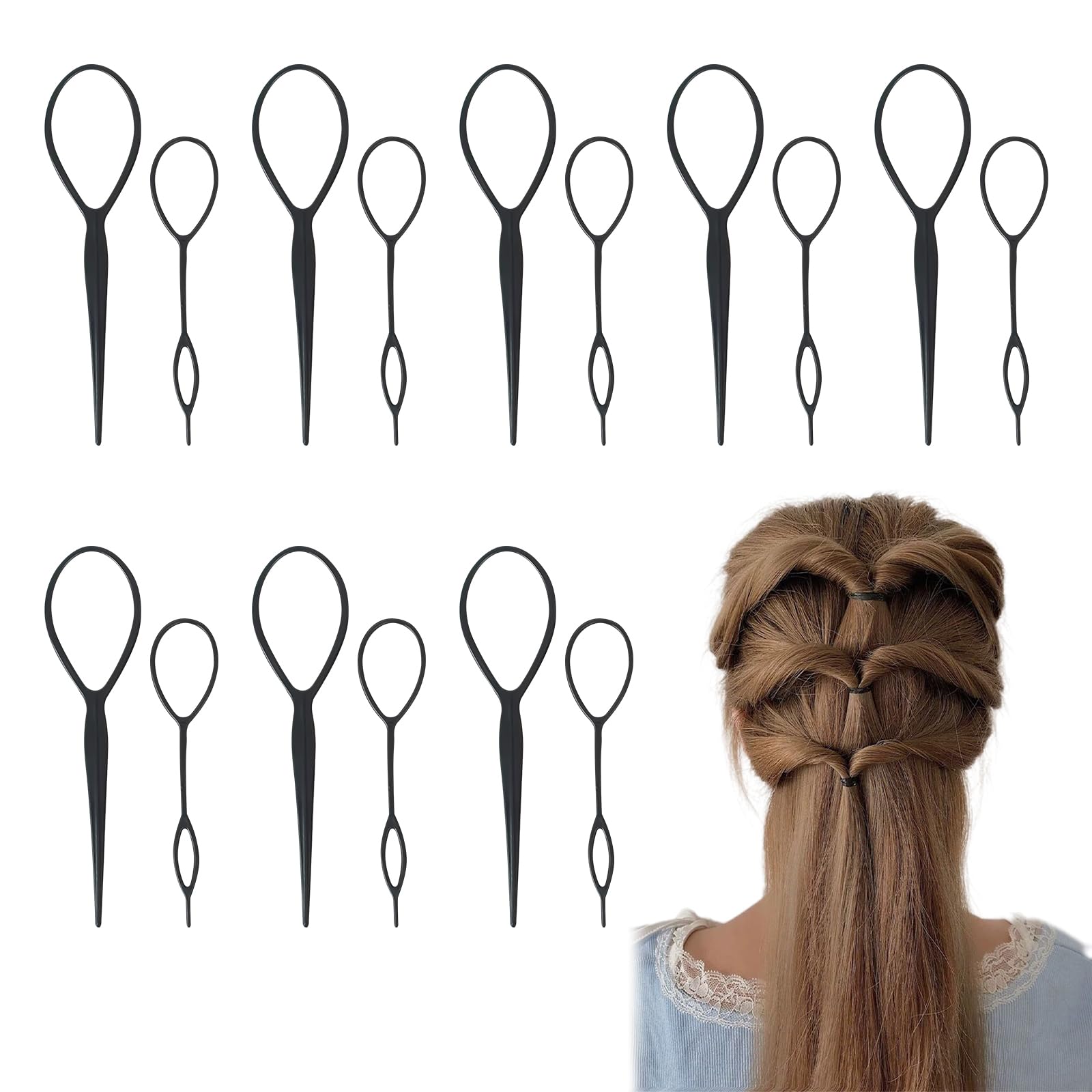 ヘアアレンジスティック ヘアスタイリングツール ヘアアレンジ グッズ アレンジスティック お団子 髪造形 ヘアデザイン くるりんぱ 多機能 プロ 初心者 サロン 美容院 レディース 家庭用 業務用 大・小 各1点入り 8セット ブラック