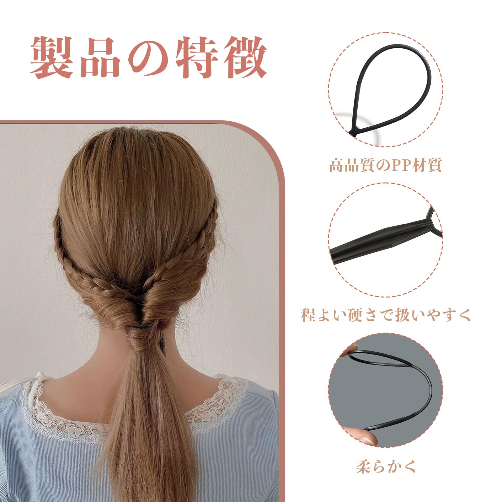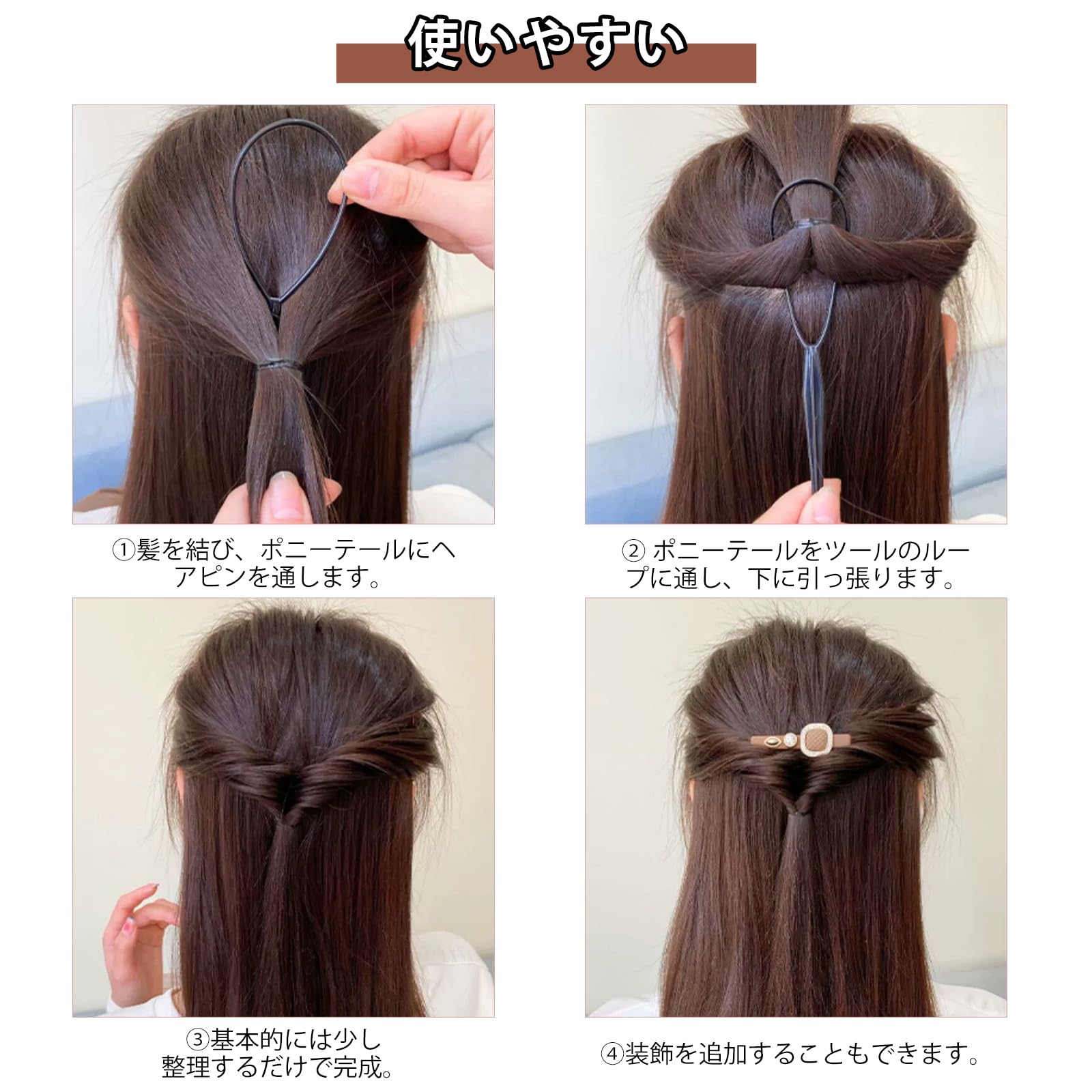 【使いやすい】大きいサイズはヘアアレンジの定番、くるりんぱ、逆リンパ、ゴム隠し、後ろ毛隠し、などにおすすめ。小さいサイズは指で掴むことの出来ない少量の毛束や、細かいゴムの結び目に使うことで後ろ毛が残らずキレイにセットすることが出来ます。