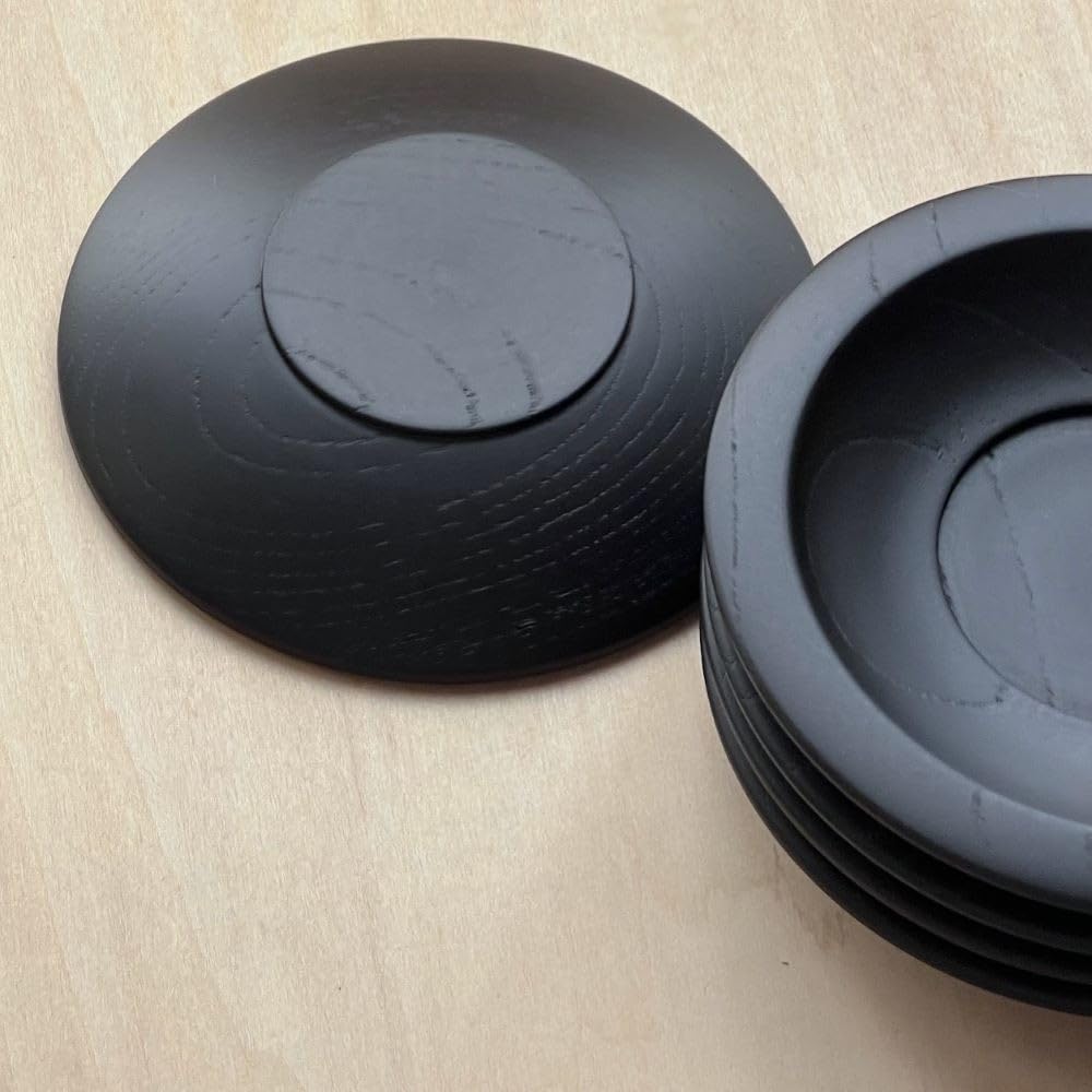 風景ドットコム けやき 欅 天然木 茶托 5枚組 日本製 (ブラック 大120mm)