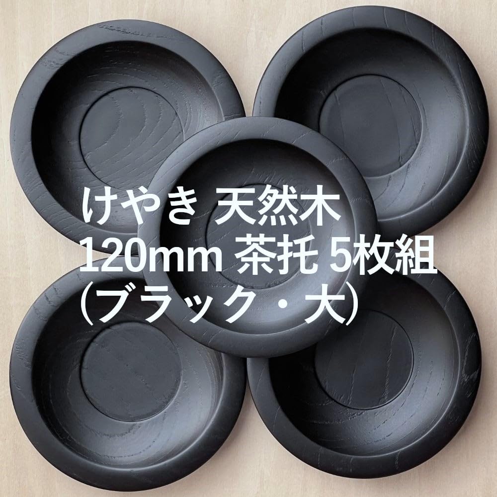 【新着特価】風景ドットコム けやき 欅 天然木 茶托 5枚組 日本製 (ブラック 大120mm)