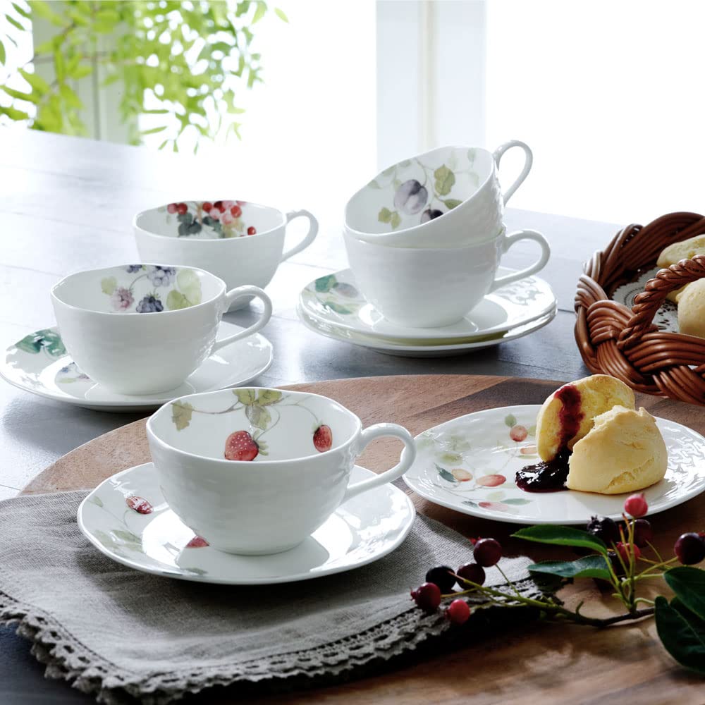 NARUMI(ナルミ) カップ ソーサー セット ルーシーガーデン 210cc ベリー柄 5柄セット かわいい おしゃれ レリーフ 結婚祝い 母の日 プレゼント ティー コーヒー 兼用 電子レンジ温め 食洗機対応 ギフト箱入り ラッピング済 96010-23067PAZ