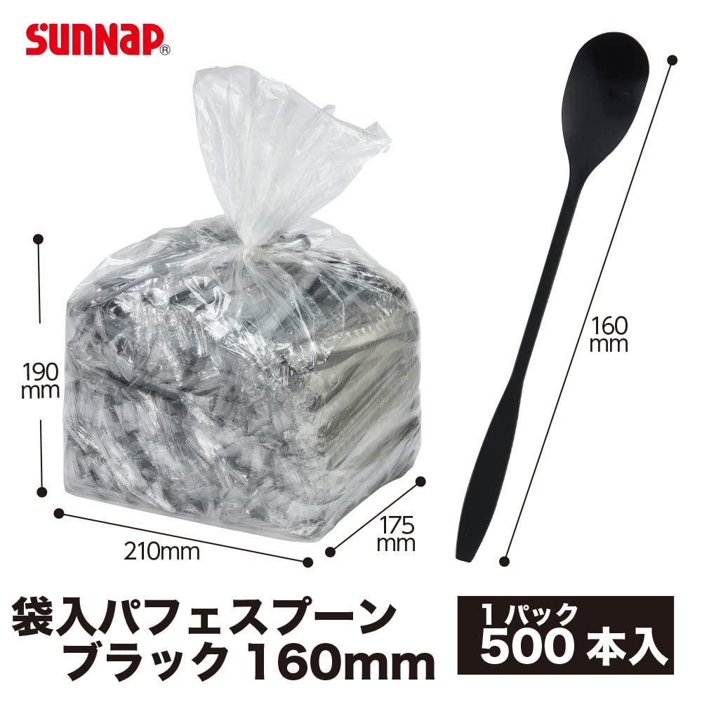 サンナップ 【 個包装パフェスプーン ブラック・16cm】フラッペやかき氷、パフェに好適なロングマドラースプーン 黒色カトラリー 500本 SPP16500BK