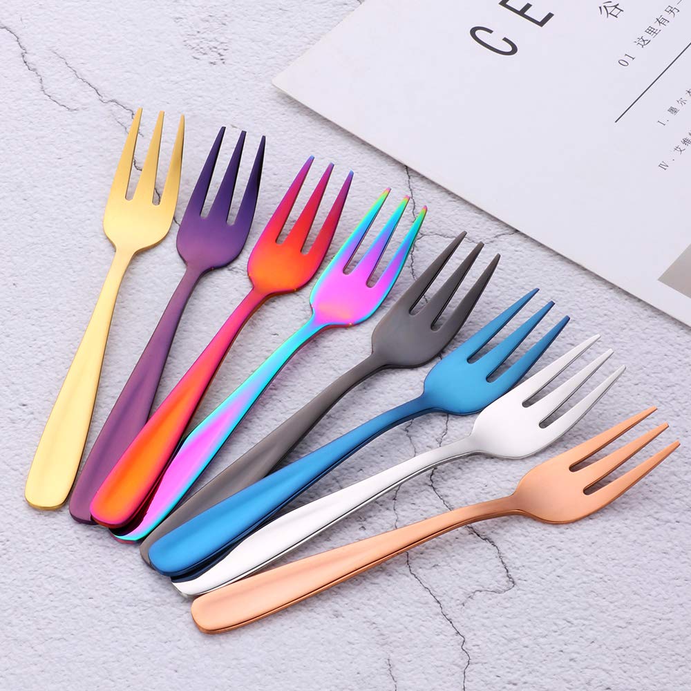 【在庫処分】デザートフォーク ケーキフォーク 8色 8本セット オシャレ ステンレス製 デザート ケーキ フルーツ 和菓子等に適用