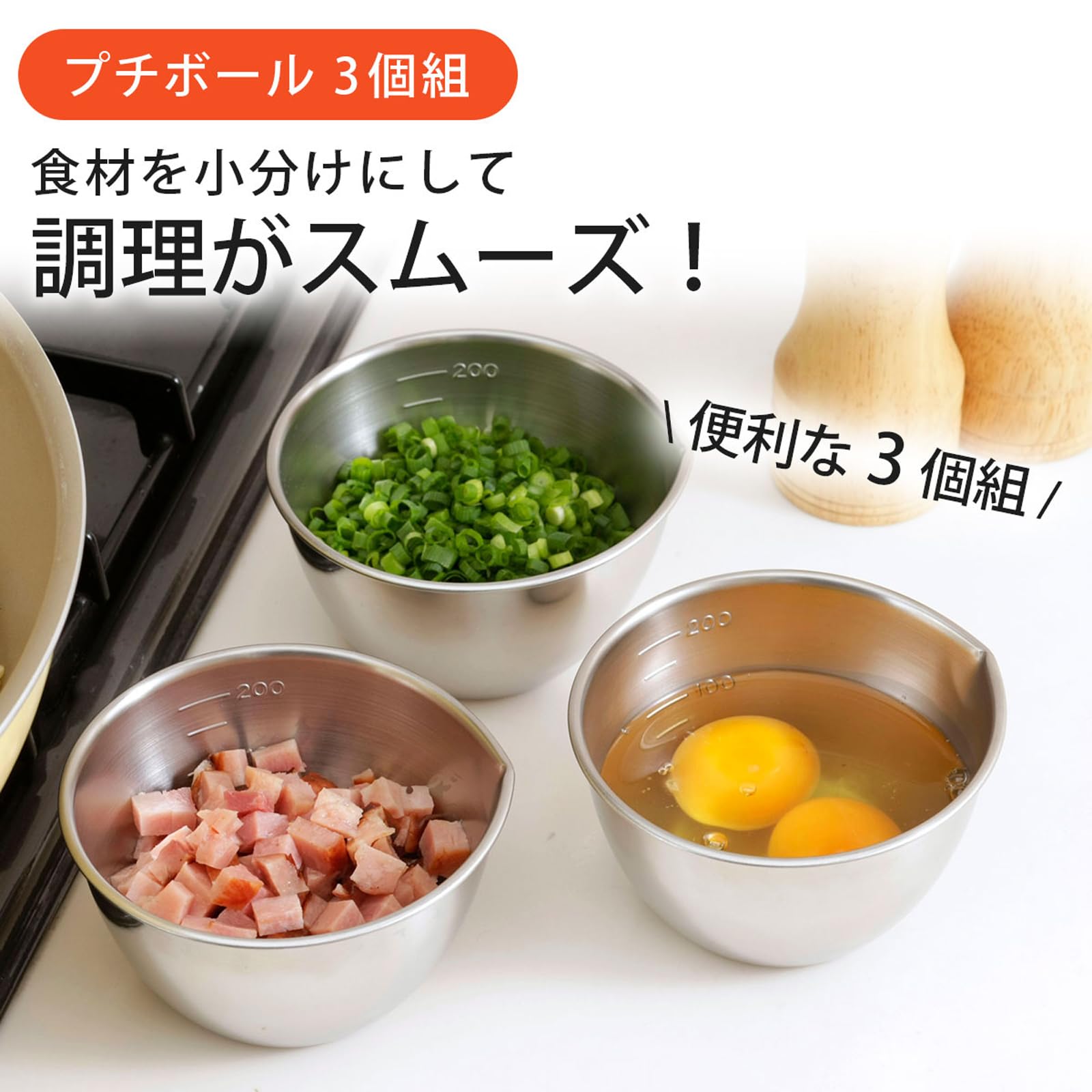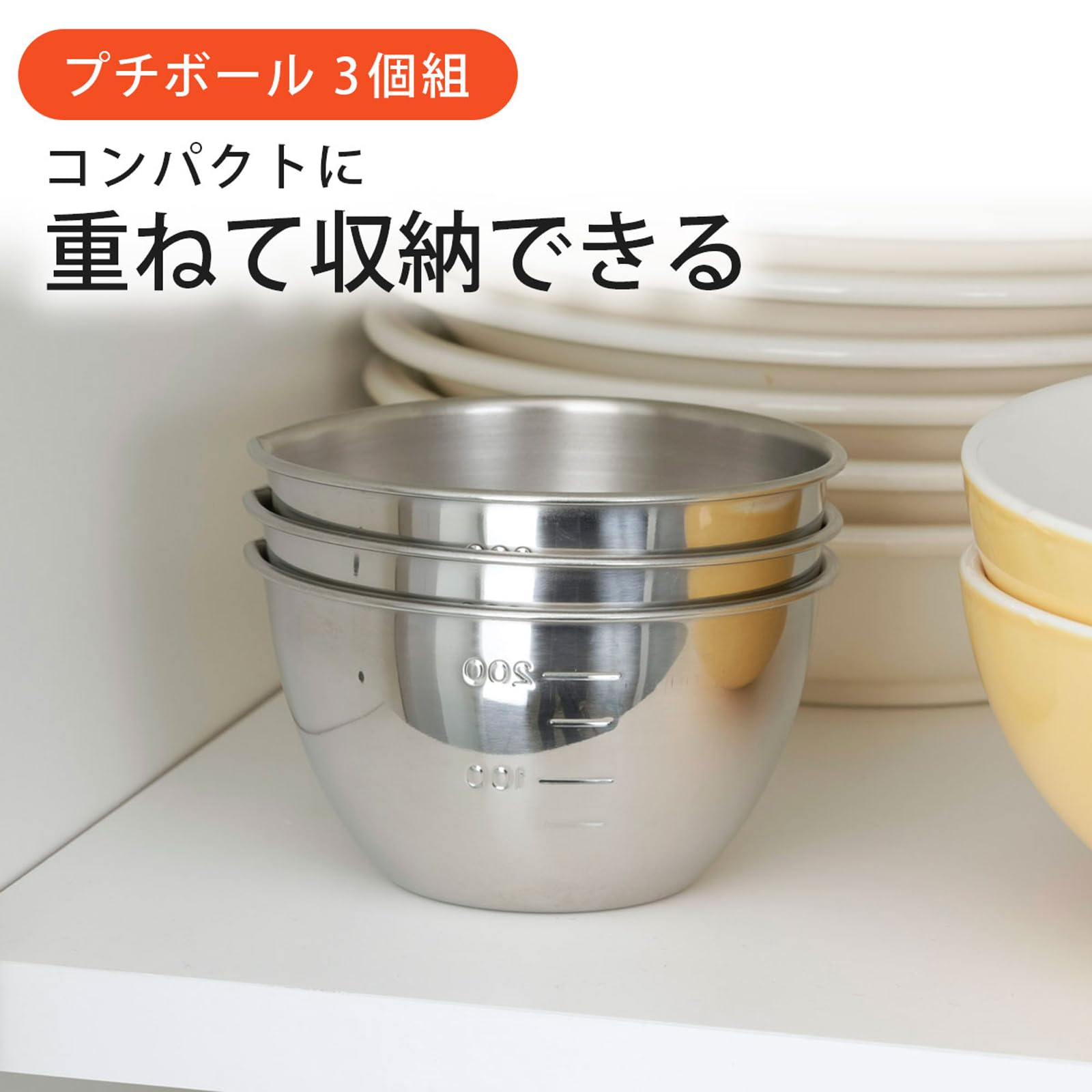 下村企販 ボール 小分け ステンレス 3個組 目盛り 注ぎ口付き 日本製 28867