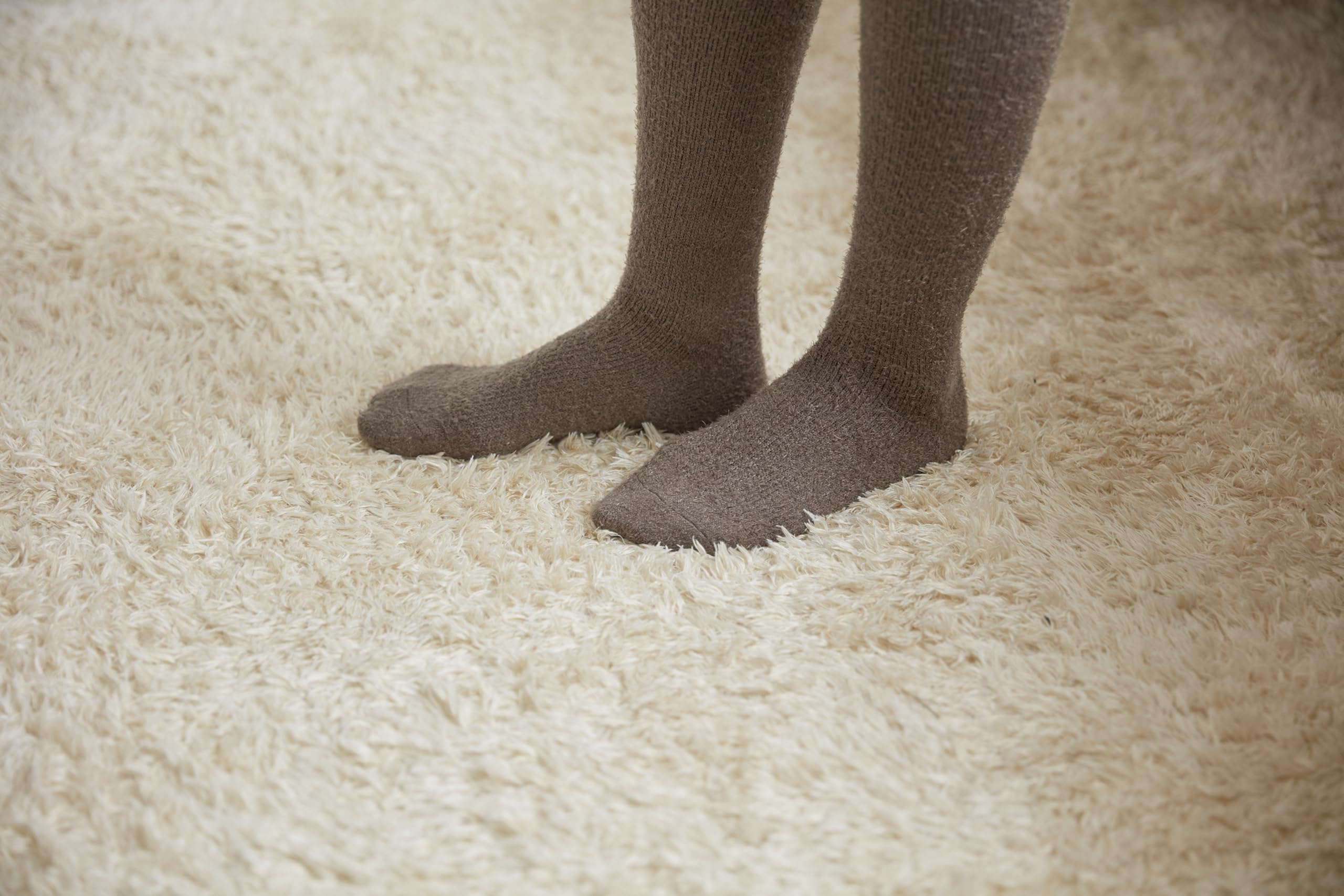 シャギー素材を使用しており、ふんわりとした感触が足を包み込み、柔らかさと暖かさを両立します。