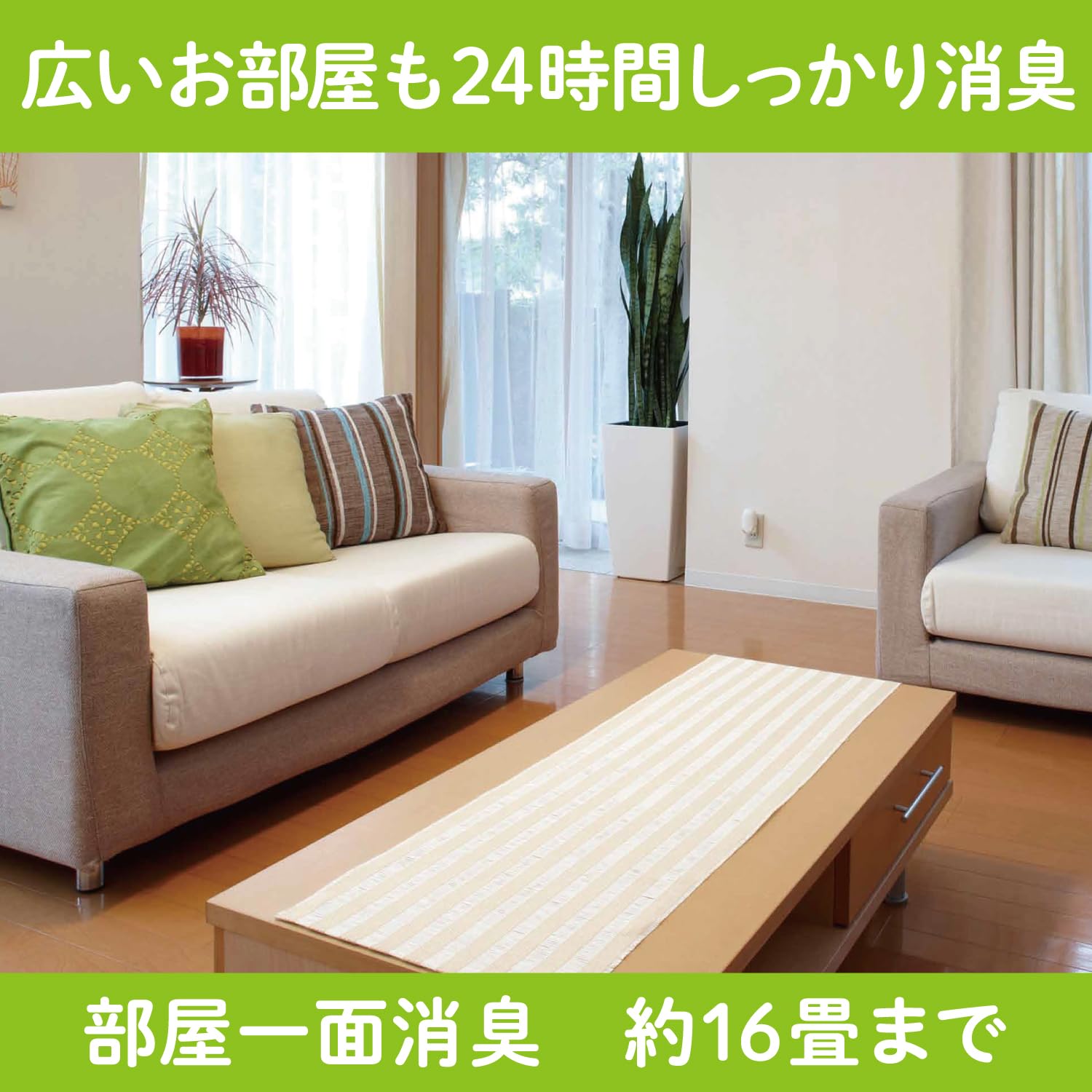 【電子のパワーで24時間ニオイをクリーン】LDKなどの広いお部屋(約16畳まで)を部屋一面24時間しっかり消臭します。