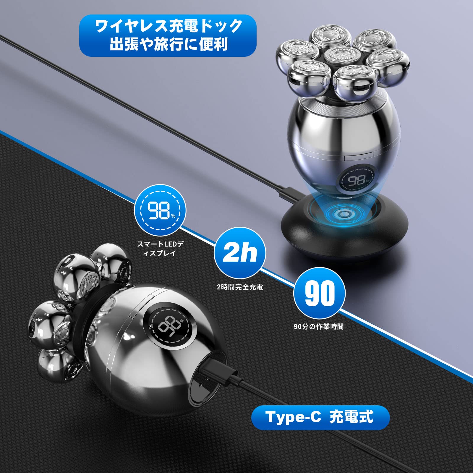 【在庫処分】スキンヘッド用シェーバー スキンヘッド シェーバー 2つ充電方法 Beedove 6 in 1 スキンヘッド用電気シェーバー 7D ひげそり 電動 メンズシェーバー LCDディスプレイ付き 回転式 防水 バリカン 鼻毛トリマー Type-C充電