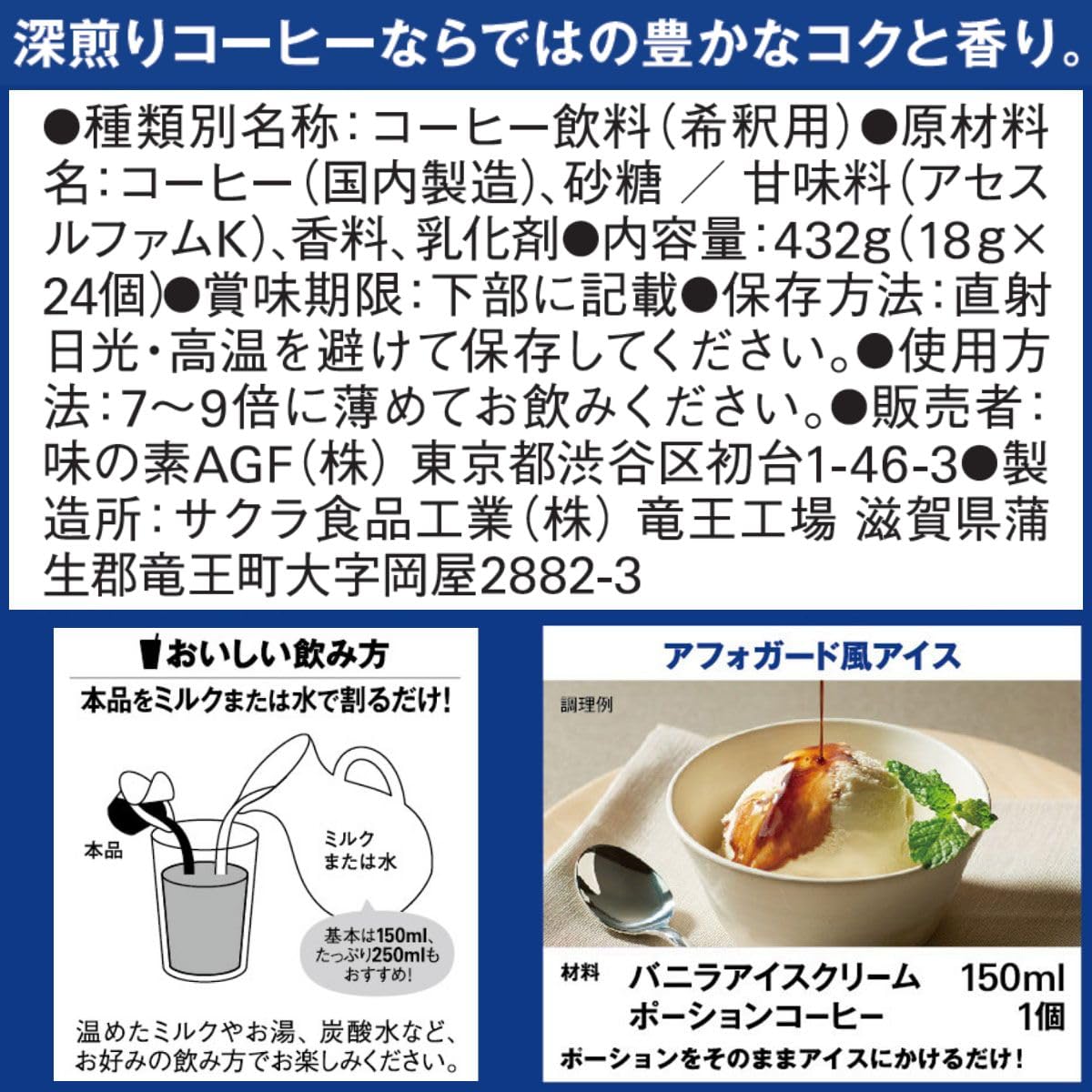 AGFの独自の抽出技術により、ストレートでアイスコーヒーはもちろん、ミルクとの相性も良いので濃厚なカフェオレとしてもお楽しみいただけます。