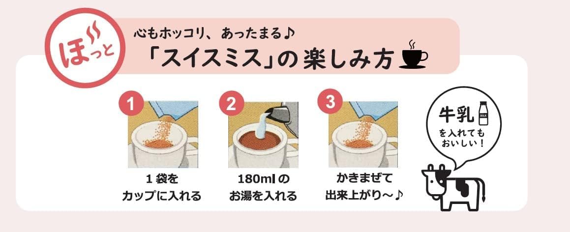 この商品は、お湯を加えてよくかき混ぜてから飲んでください。また、直射日光や熱源から遠ざけて保存してください。