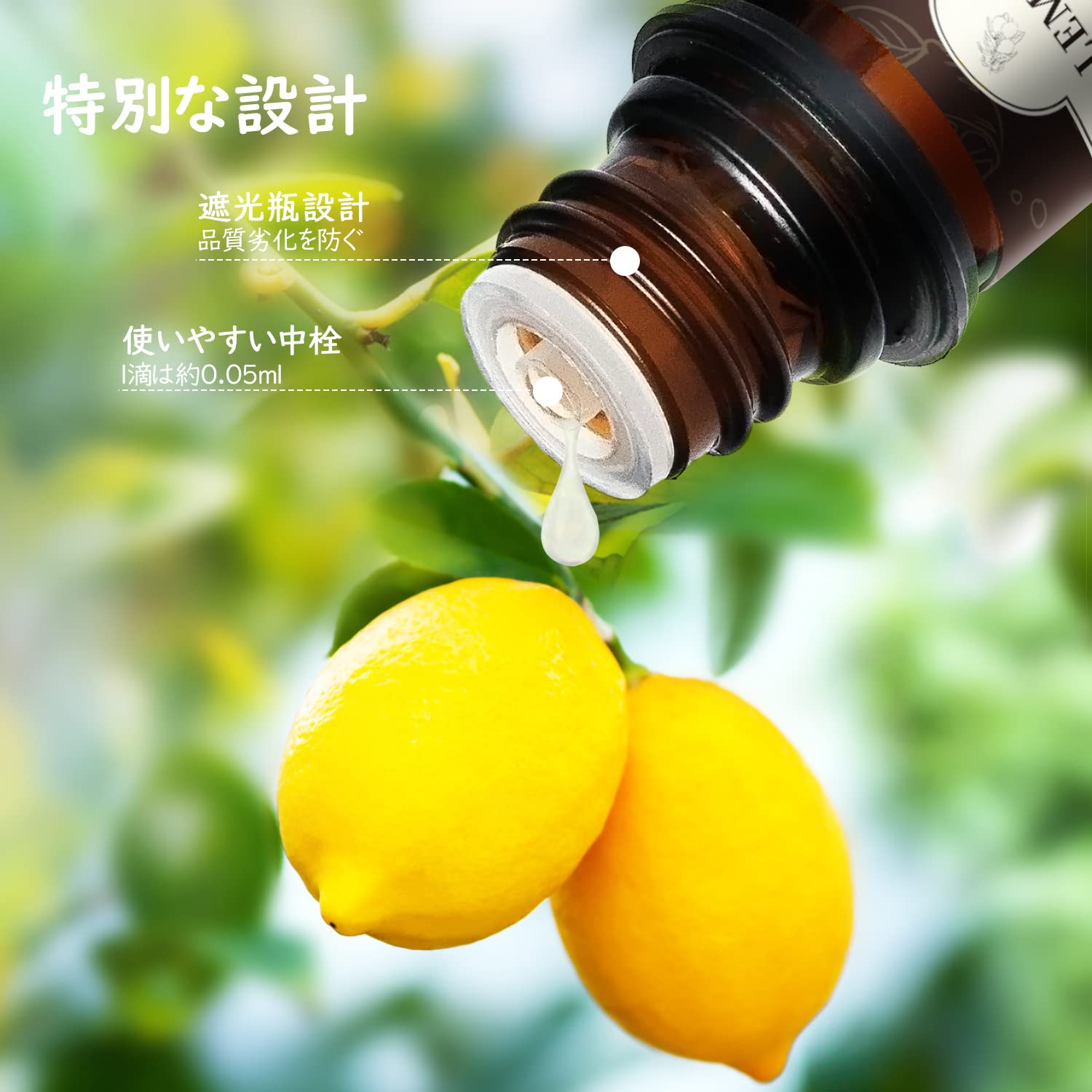 Poven レモン エッセンシャルオイル 天然100% レモン精油 ナチュラル アロマオイル アロマディフューザー用 10ml Lemon Essential Oil