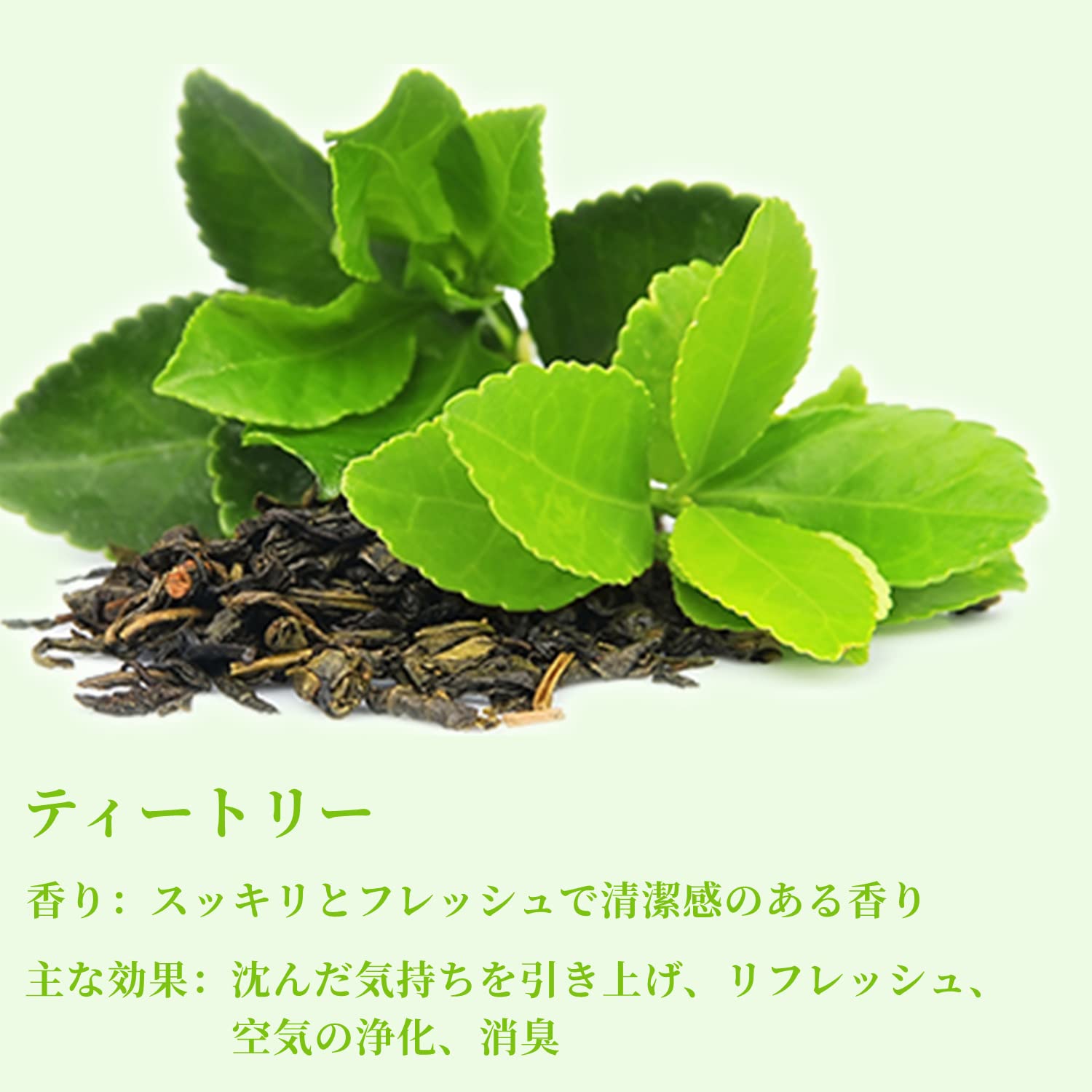 【純天然抽出】水蒸気蒸留の抽出法で、ティーツリーの葉から抽出した天然の素材です。合成香料などの化学物質を添加せず、その天然の香りから自然の力を感じることができます。沈んだ気持ちを引き上げ、活力を与えてくれます。リフレッシュしたい時や頭をスッキリさせたい時にもおすすめです。