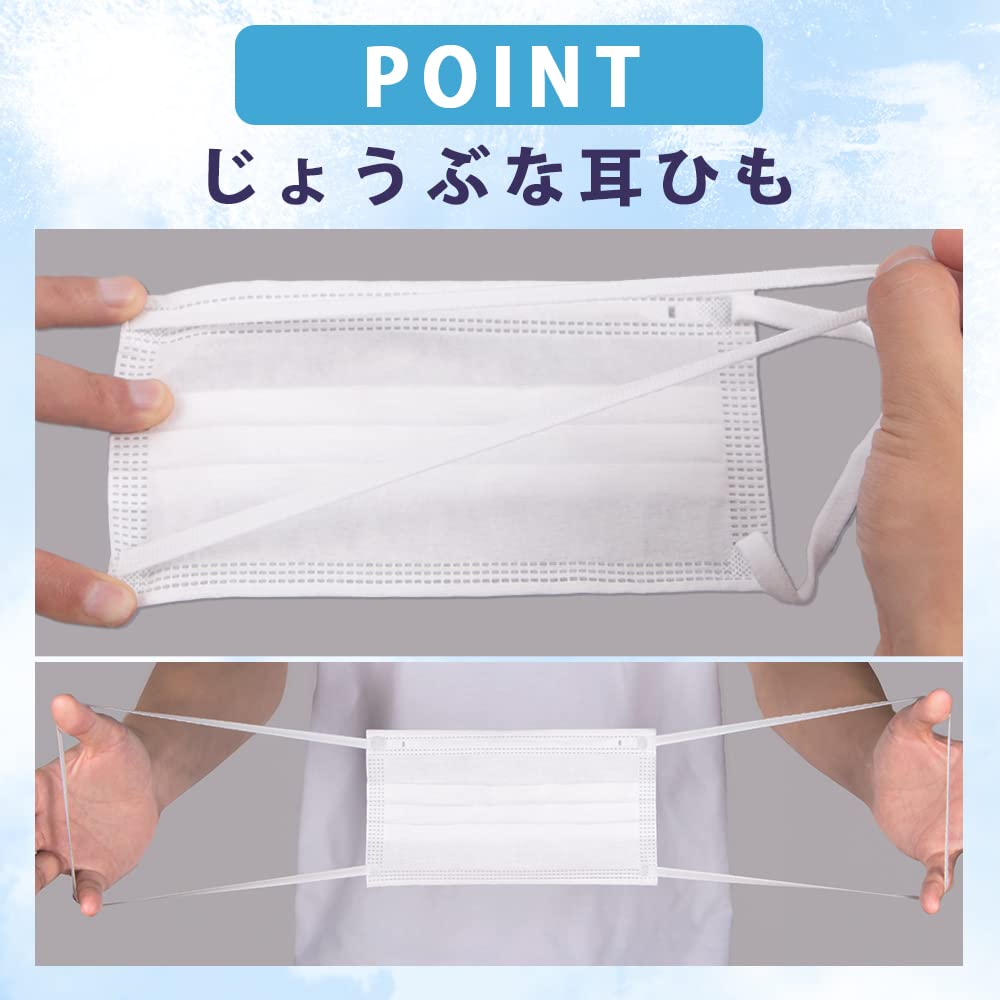 【耳が痛くならない 広幅い・高ストレッチ性耳ひも】耳にやさしい、広幅い極やわらか平ゴム紐を採用。マスクを長時間つけるということは、耳の付け根にマスクの紐の圧力が長時間かかっている状態です。本製品の紐は幅が広いタイプ、耳の後ろにかかる圧力が分散されることができる!普通の耳ひもと比べ、耳への圧力がより少ない!「耳の付け根に激痛が走る」「耳の付け根から出血してしまう」などの心配は不要!耳が痛くなりにくい、長時間着用のマスク生活を快適にする!