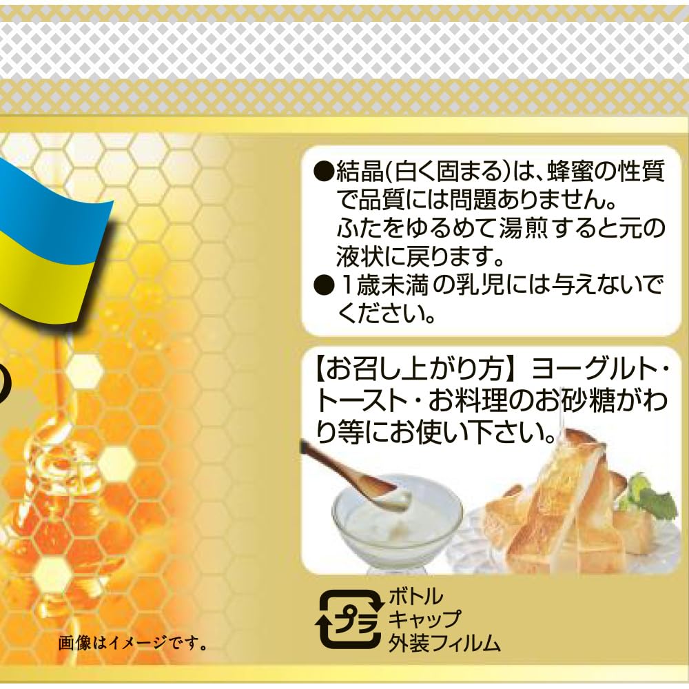正栄 ウクライナ産 純粋はちみつ(ポリ) 500g 芳醇な香りと豊かなコク ウクライナ産 東ヨーロッパの大自然が育んだ芳醇な香りと深い甘さが特徴の蜂蜜です。 原材料・成分 製品ラベルに記載 使用方法 ヨーグルト・トースト・お料理のお砂糖代わり等にお使いください。