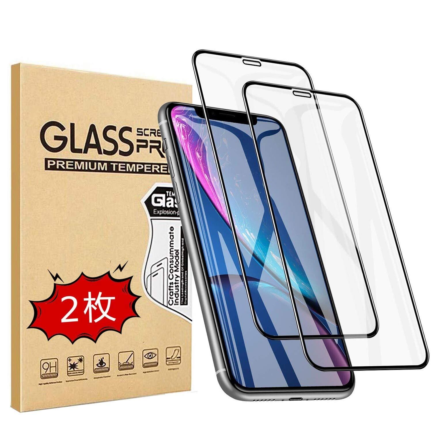 【2枚セット】 iPhone 11 / iPhone XR ガラスフイルム iPhone XR 強化ガラス【日本製素材旭硝子製】 6Dラウンドエッジ加工/業界最高硬度9H/高透過率/3D Touch対応/自動吸着/気泡ゼロ アイフォンXR ガラスフィルム アイフォンXR 全面保護 iPhone 10強化ガラス液晶保護フイルム 全面フイルムカバー 6.1インチ対応 ブラック