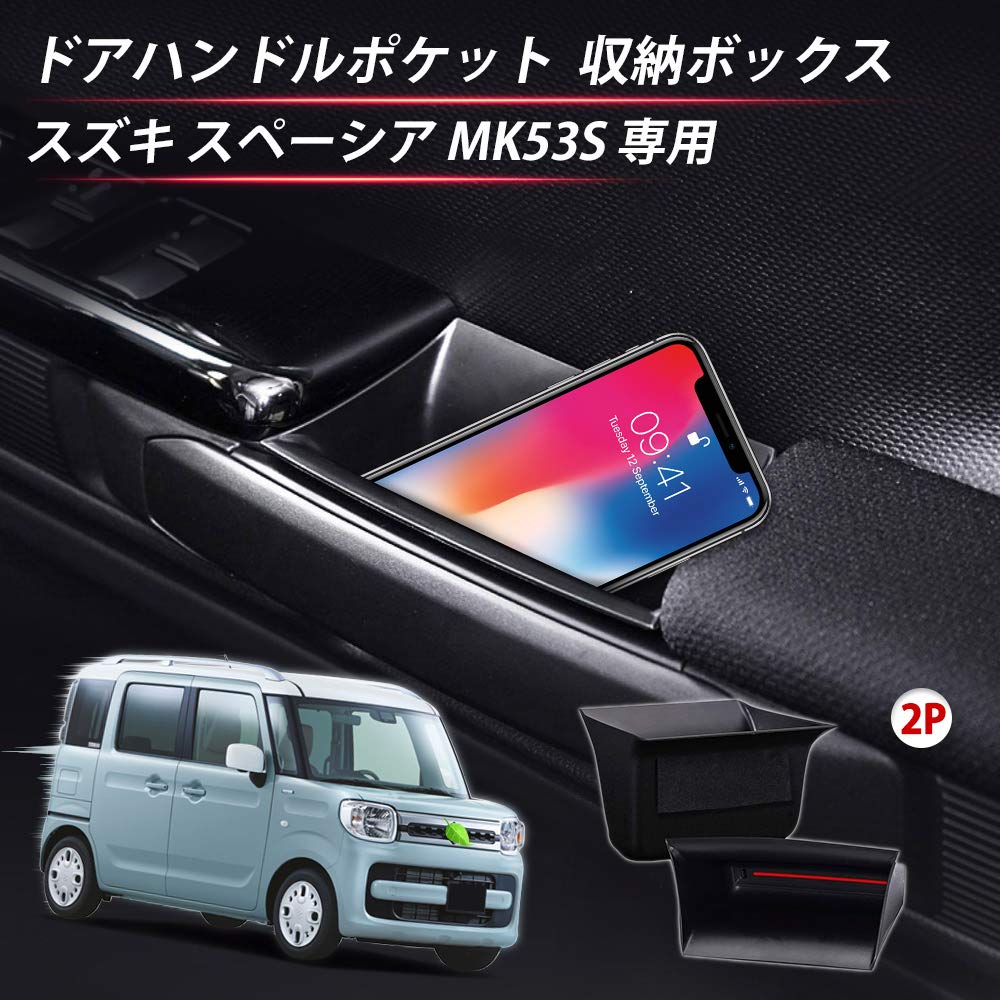 【在庫処分】Auto spec スズキ スペーシア MK53S 専用 ドアハンドルポケット スペーシアカスタム スペーシアギア SPACIA 収納ボックス H29.12〜現行 ドアポケット 小物入れ 運転席 助手席 車種専用設計 耐汚れ 内装パーツ装着簡単 2Pセット (スズキ スペーシア MK53S ブラック(2個セット))