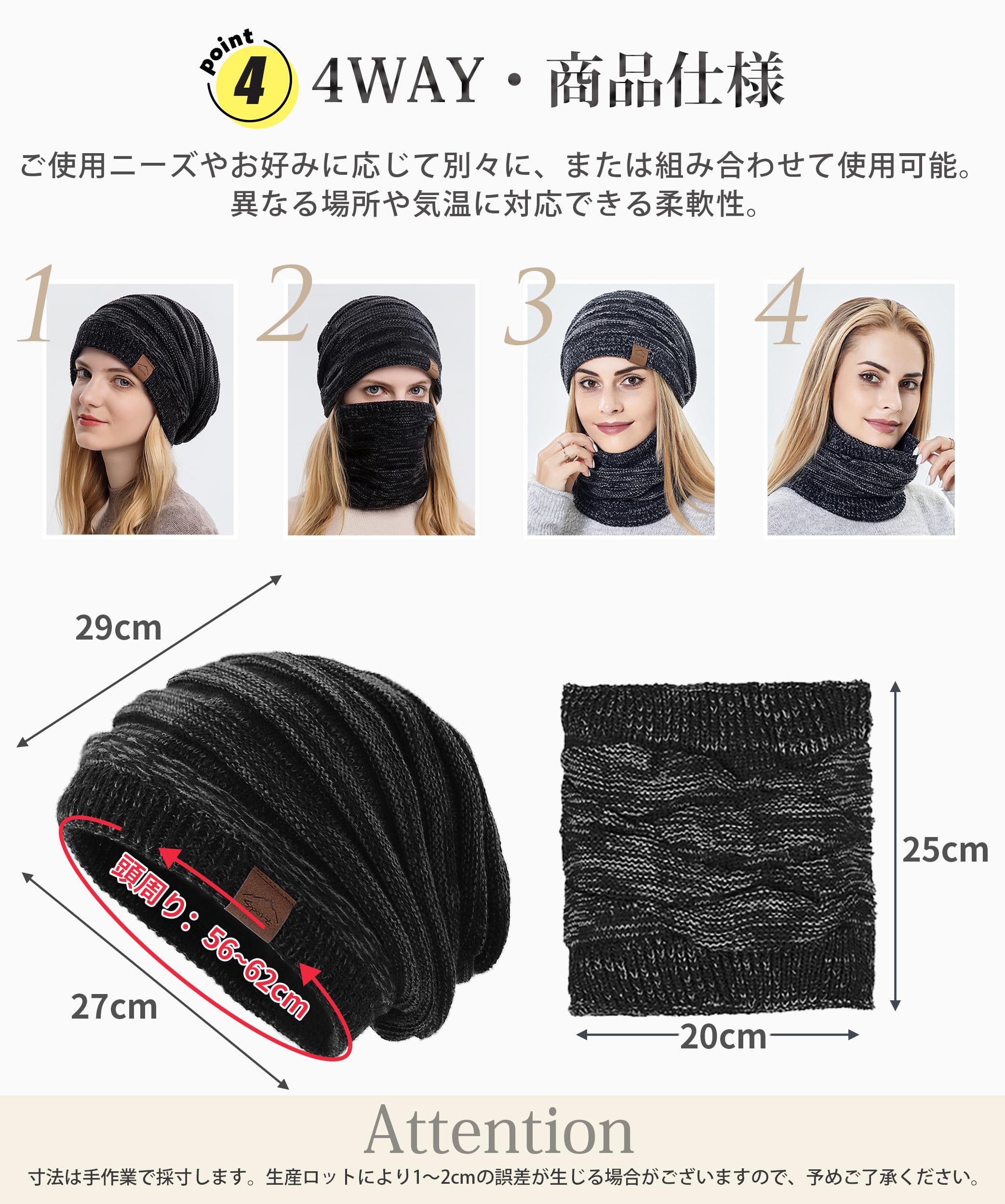 [PALAME] ニット帽 ネックウォーマー レディース 冬 防寒 【ふわふわ裏起毛・360°究極防寒・美シルエット】 ニット 帽子 セット ビーニー 目出し帽 保温 伸縮性 柔らかい 暖かい おしゃれ 可愛い 小顔 防風 通勤・通学・自転車・アウトドア