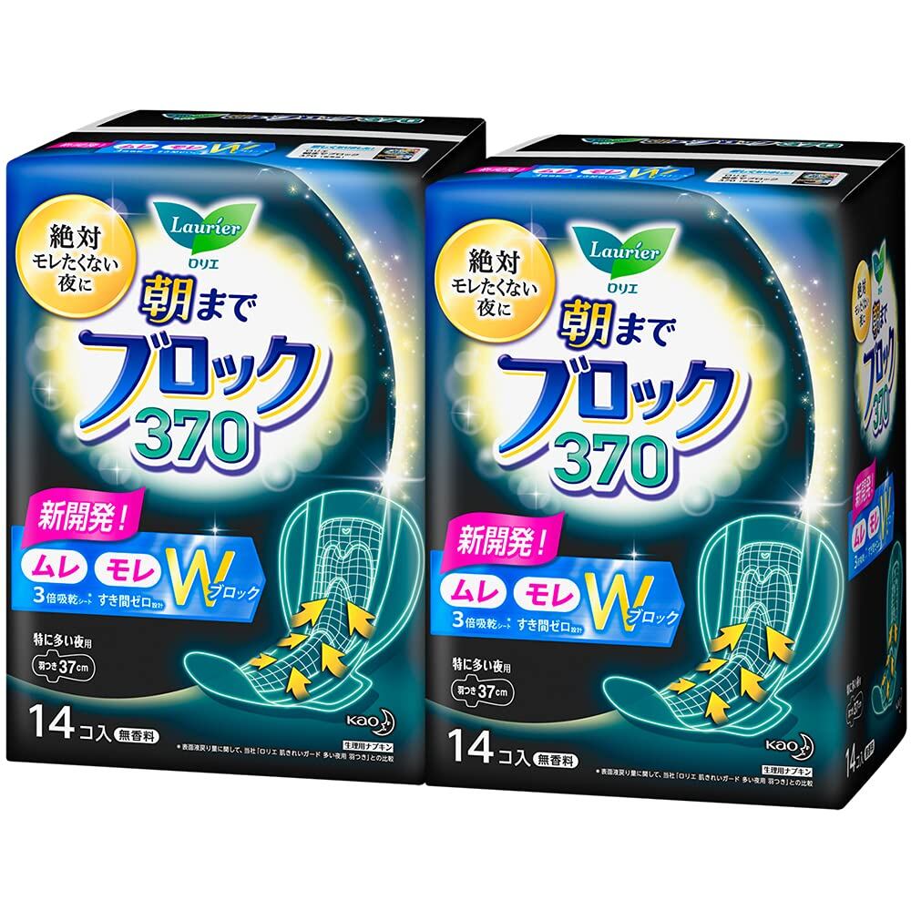 【まとめ買い】ロリエ 朝までブロック 370 羽つき 37cm 14コ入×2個