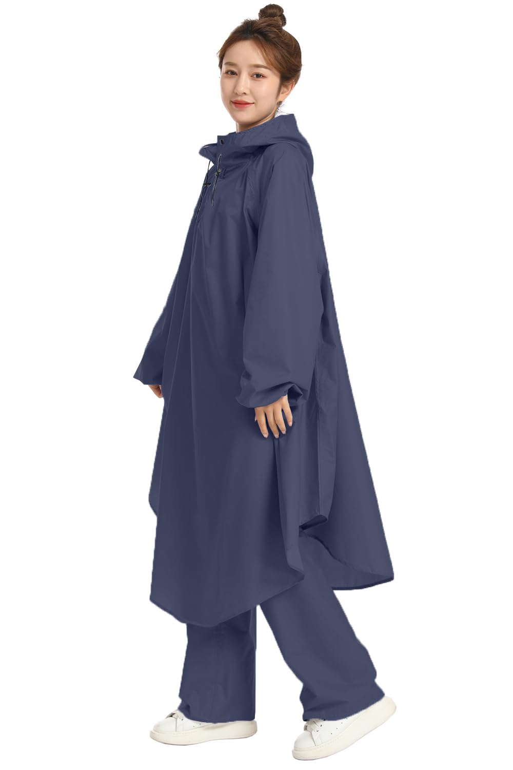 [BUQIREN] レインコート 自転車 レインポンチョ 大きいサイズ 通学 レディース メンズ 大きめ ロング リュック 透明バイザー 防水 雨具 雨カッパ キャンプ 携帯 通勤 ママ 保育園の送迎 袖あり バイク ポンチョ シンプル おしゃれ 収納袋付き