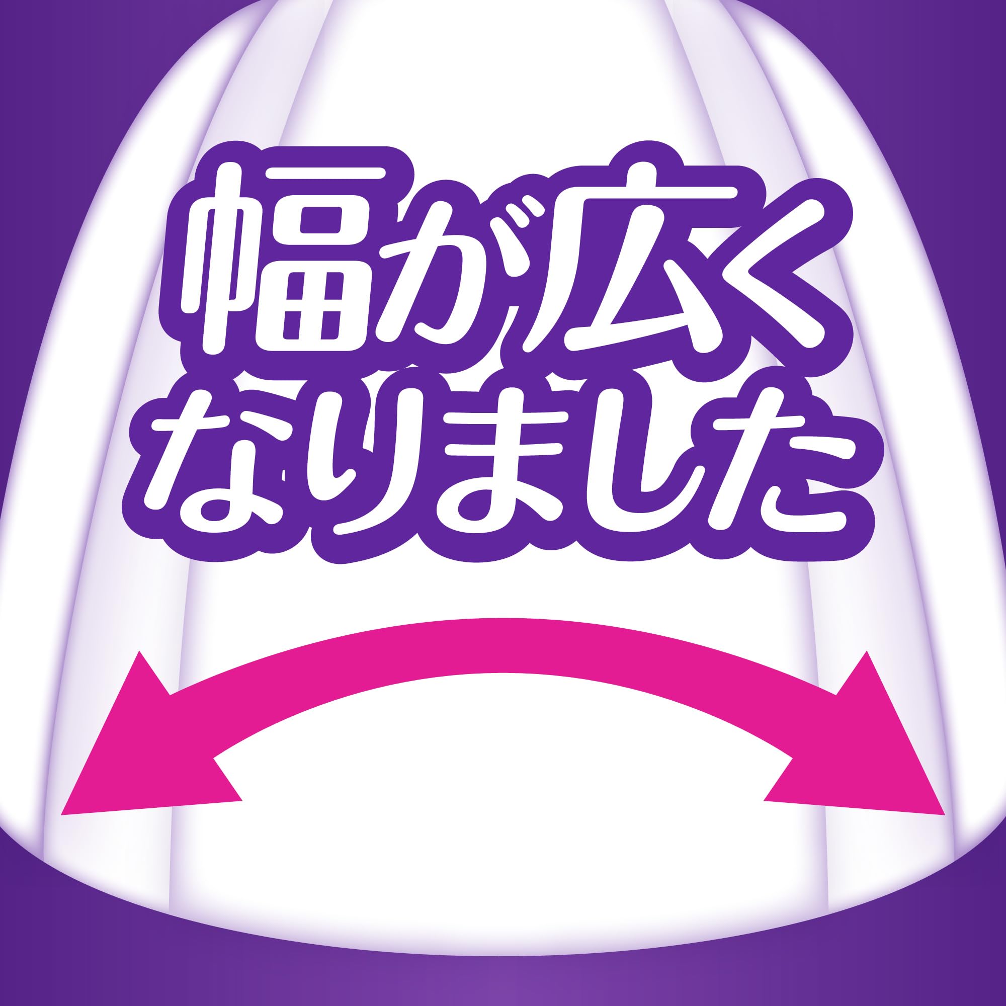 ギャザーが高くなった、ぴったりフィット横モレ防止デザインで、横モレを防止。吸収エリア幅広設計*当社従来品比較。