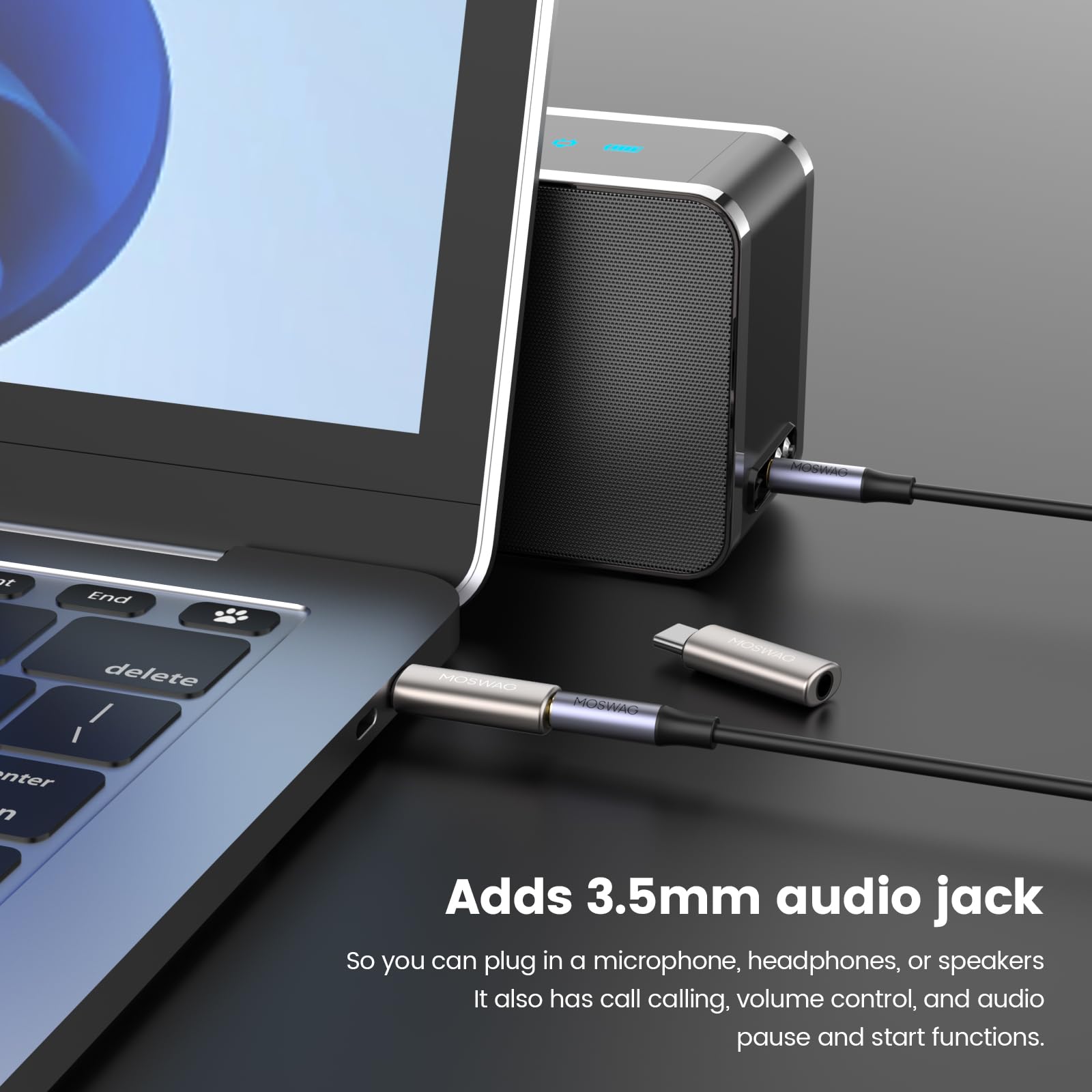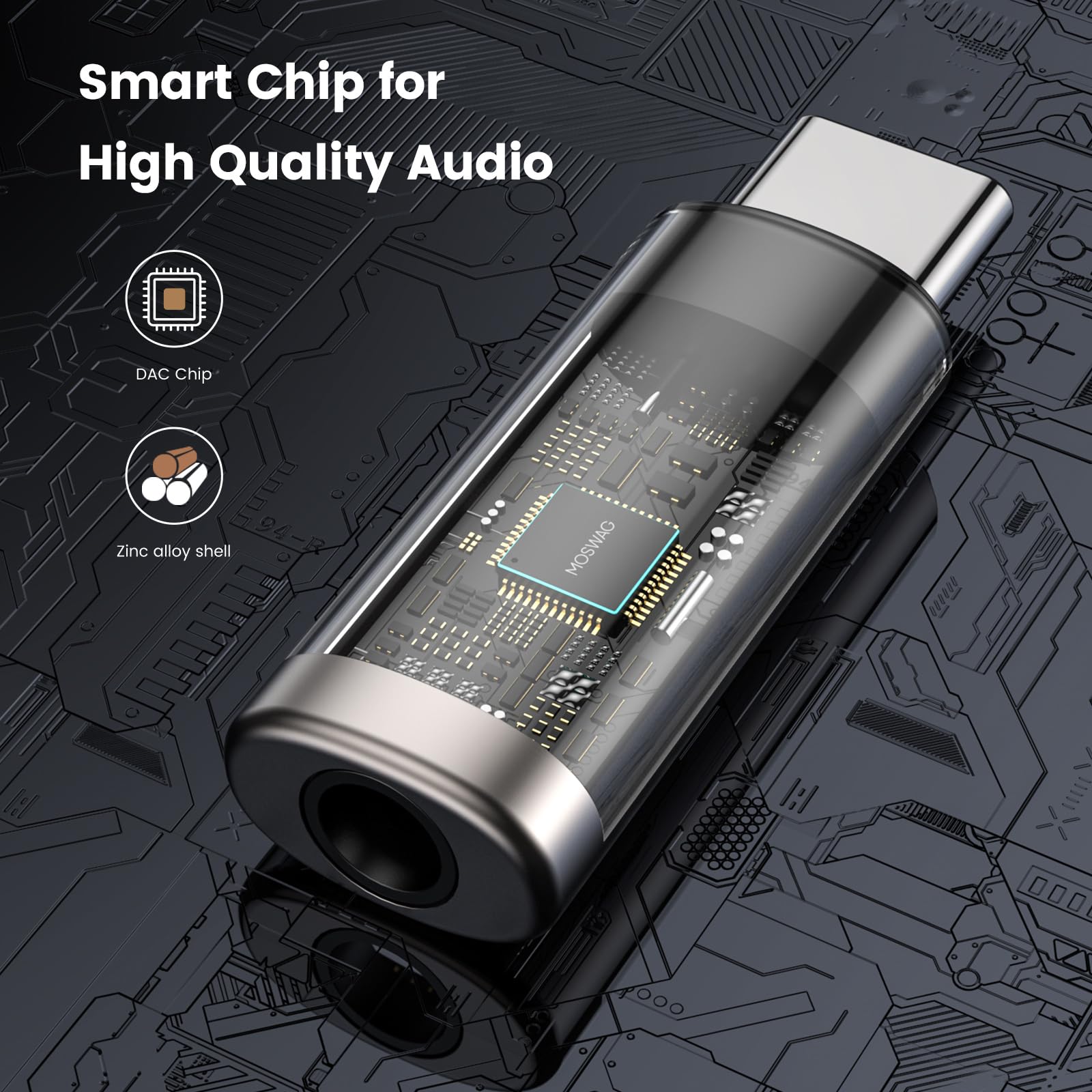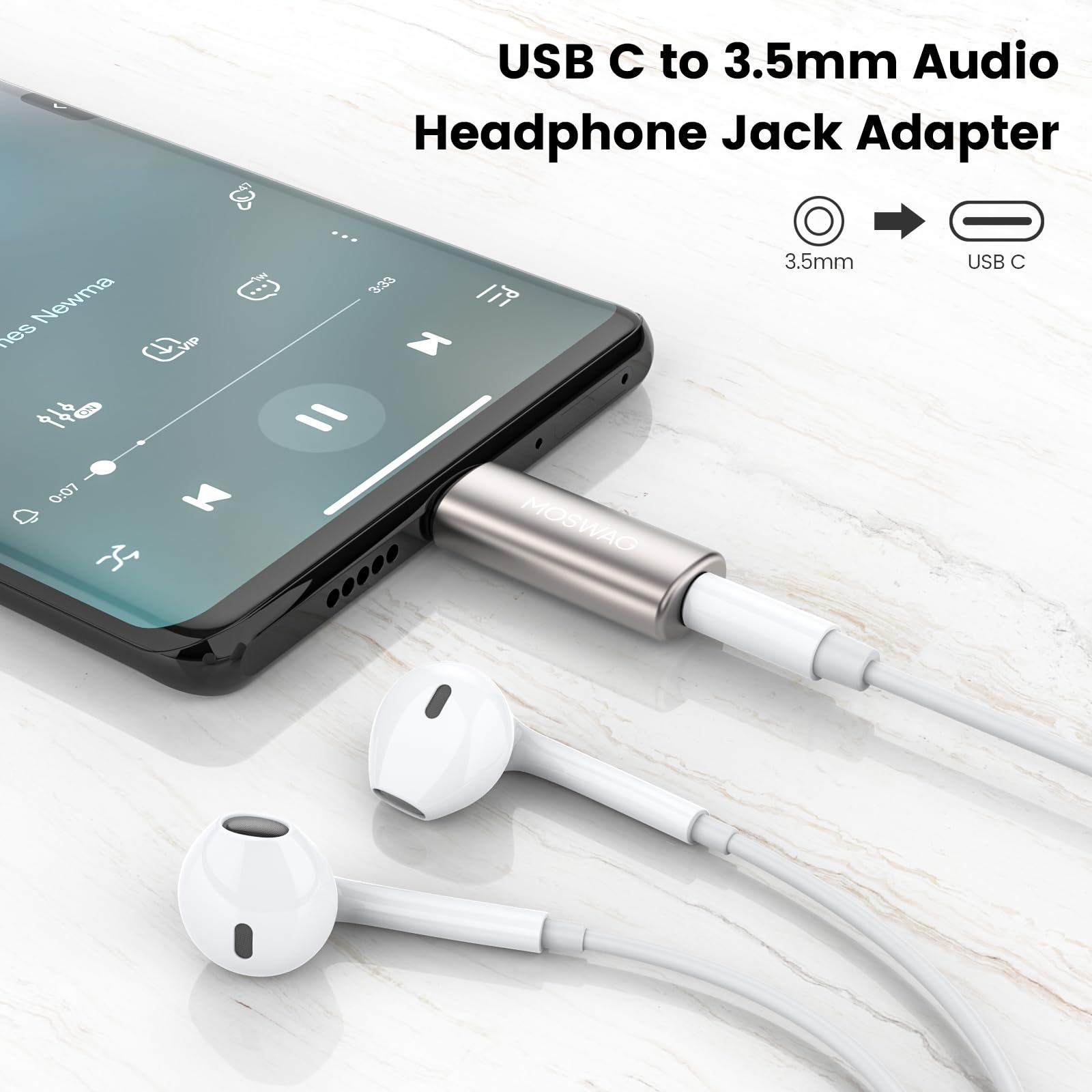 【在庫のみ】MOSWAGイヤホーンジャツク変換タイイプc(2個入り)、USB Type Cから3.5 mmヘッドホンオーディオアダプタ、ヘッドホン変換アダプタ音量調節/通話/音楽対応iPhone 15/16 Plus Pro Maxシリーズ、Pad、Mac、Androidなどのデバイスに対応