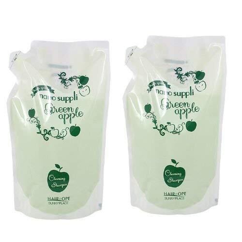 【x2個セット】 サニープレイス ナノサプリ ヘアクレンジングシャンプー グリーンアップル 800ml (詰替用)