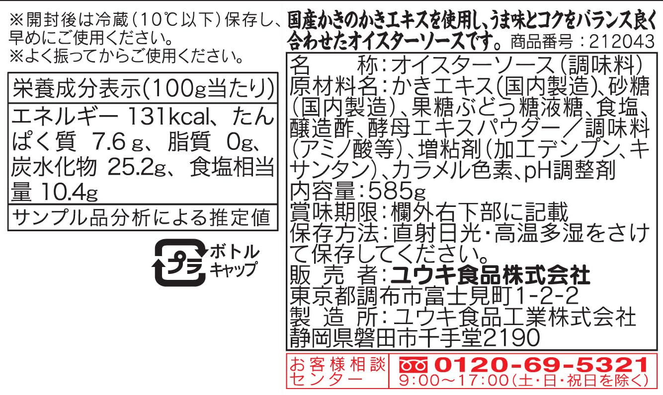 【数量限り】ユウキ食品 オイスターソース(国産かきのかきエキス使用) 585g