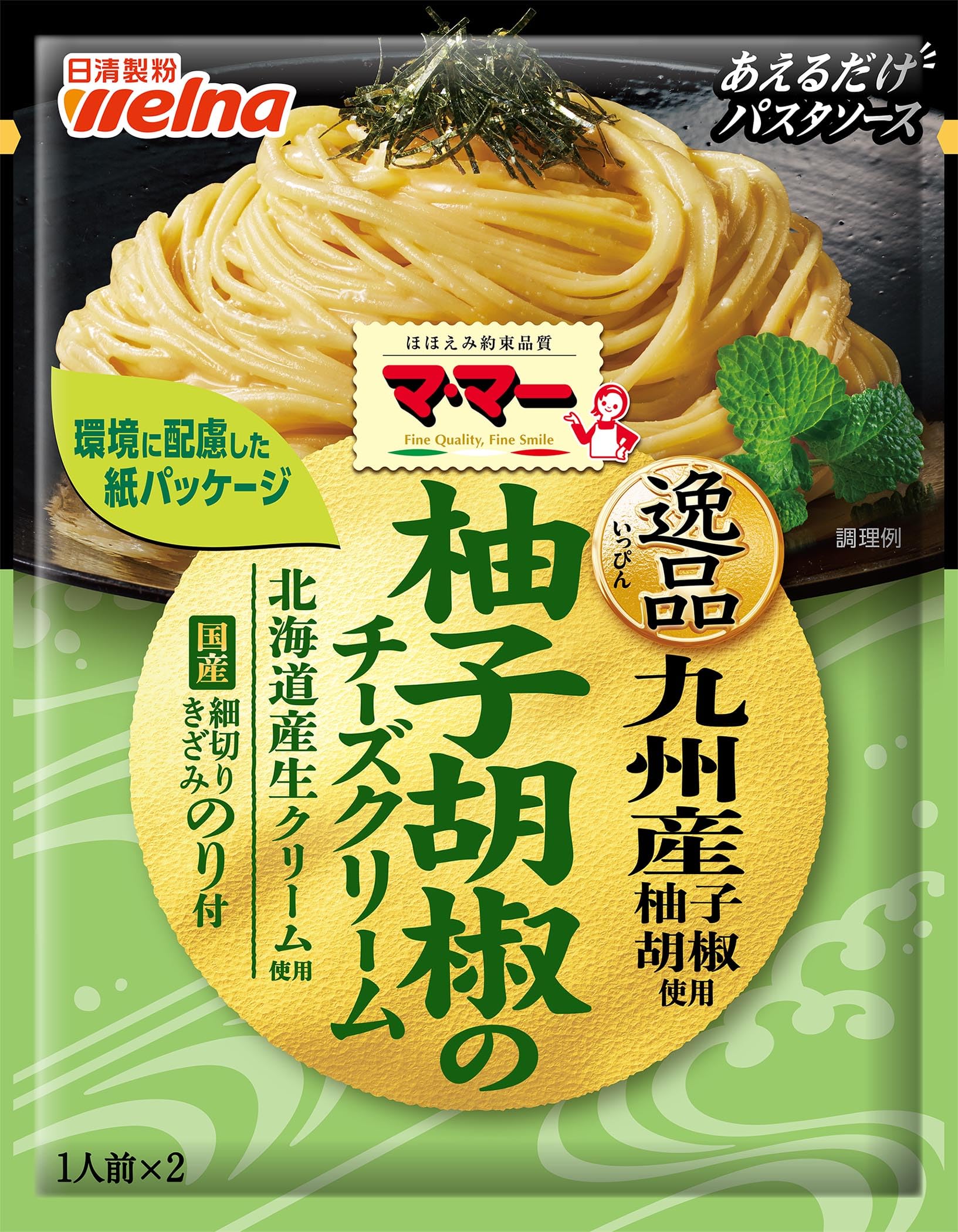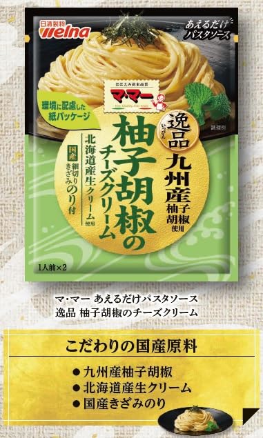 【パスタソース】チーズ、植物油脂、乳等を主要原料とする食品、生クリーム、食塩、砂糖、チーズパウダー、ゆずこしょう、還元水あめ/調味料(アミノ酸等)、リン酸塩(K、Na)、乳化剤、増粘剤(タマリンドガム)、カゼインNa、香料、(一部に乳成分・大豆を含む)【トッピング】のり 原料原産地名:国内製造(チーズ)