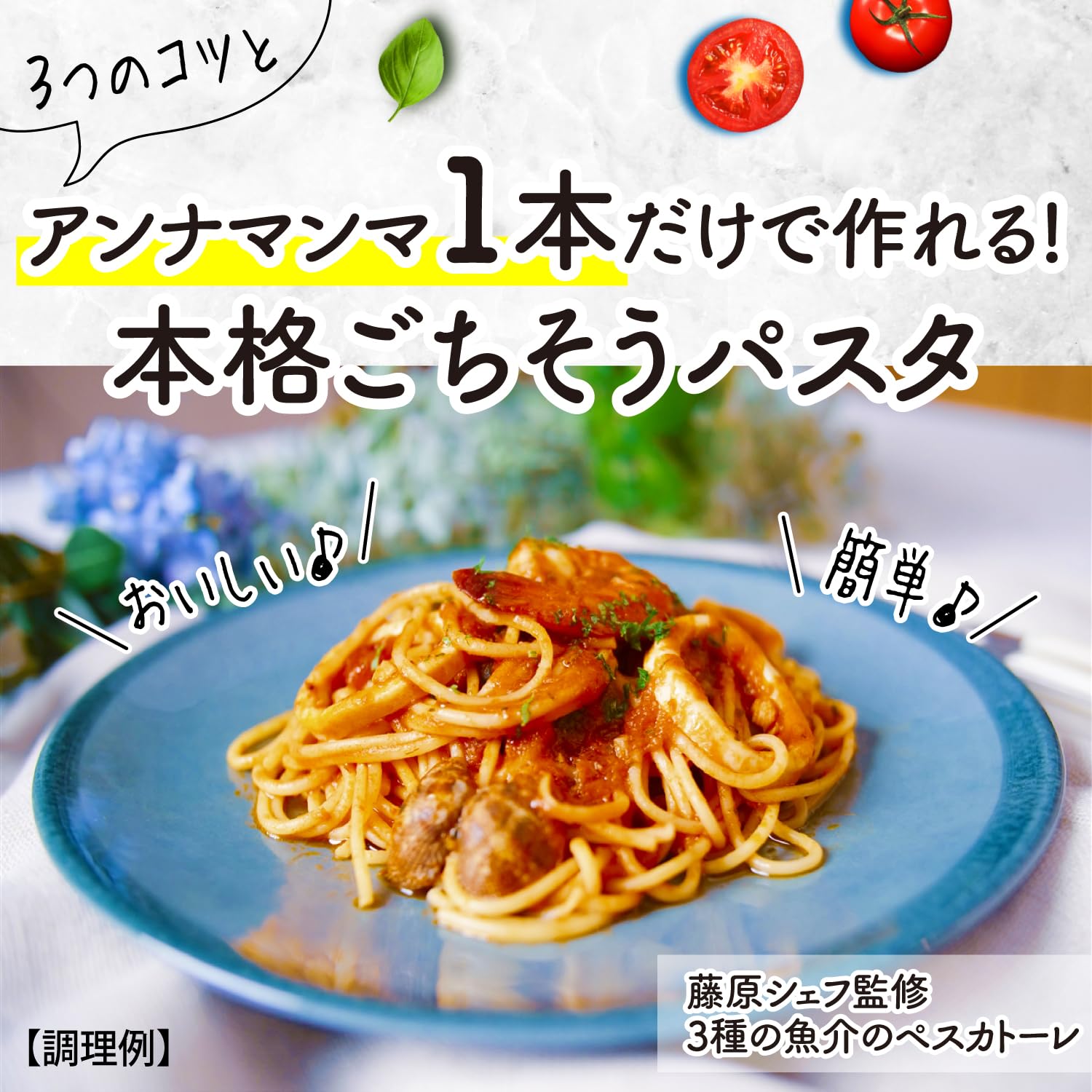 加熱時間の少ない製法で完熟トマトの風味と鮮やかな色合いを活かした、果肉感がたっぷりなパスタソース