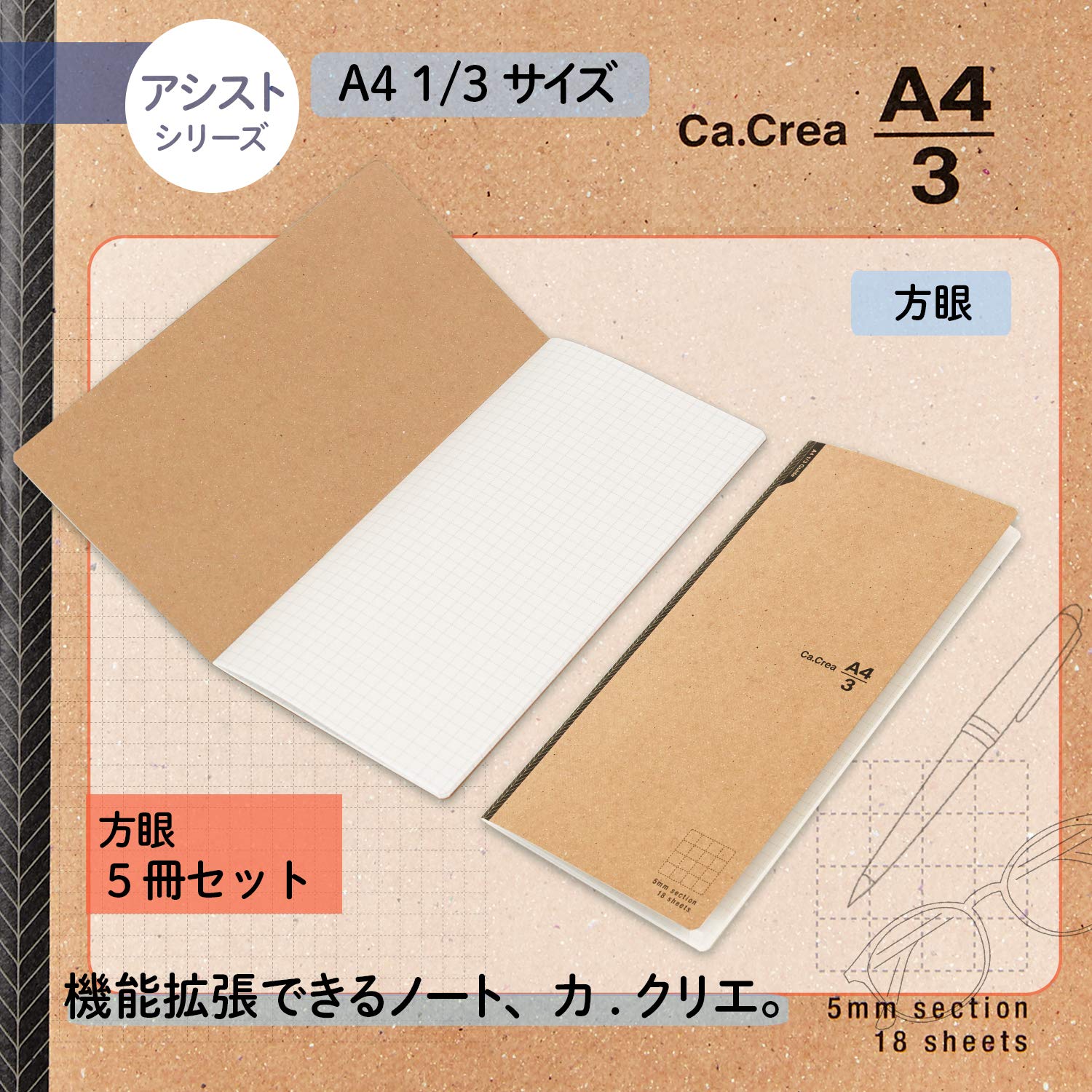 【在庫処分】プラス ノート メモ帳 カ.クリエ アシスト ノート 方眼 5mm 5冊 77-832×5 NO-681GA / 77-832
