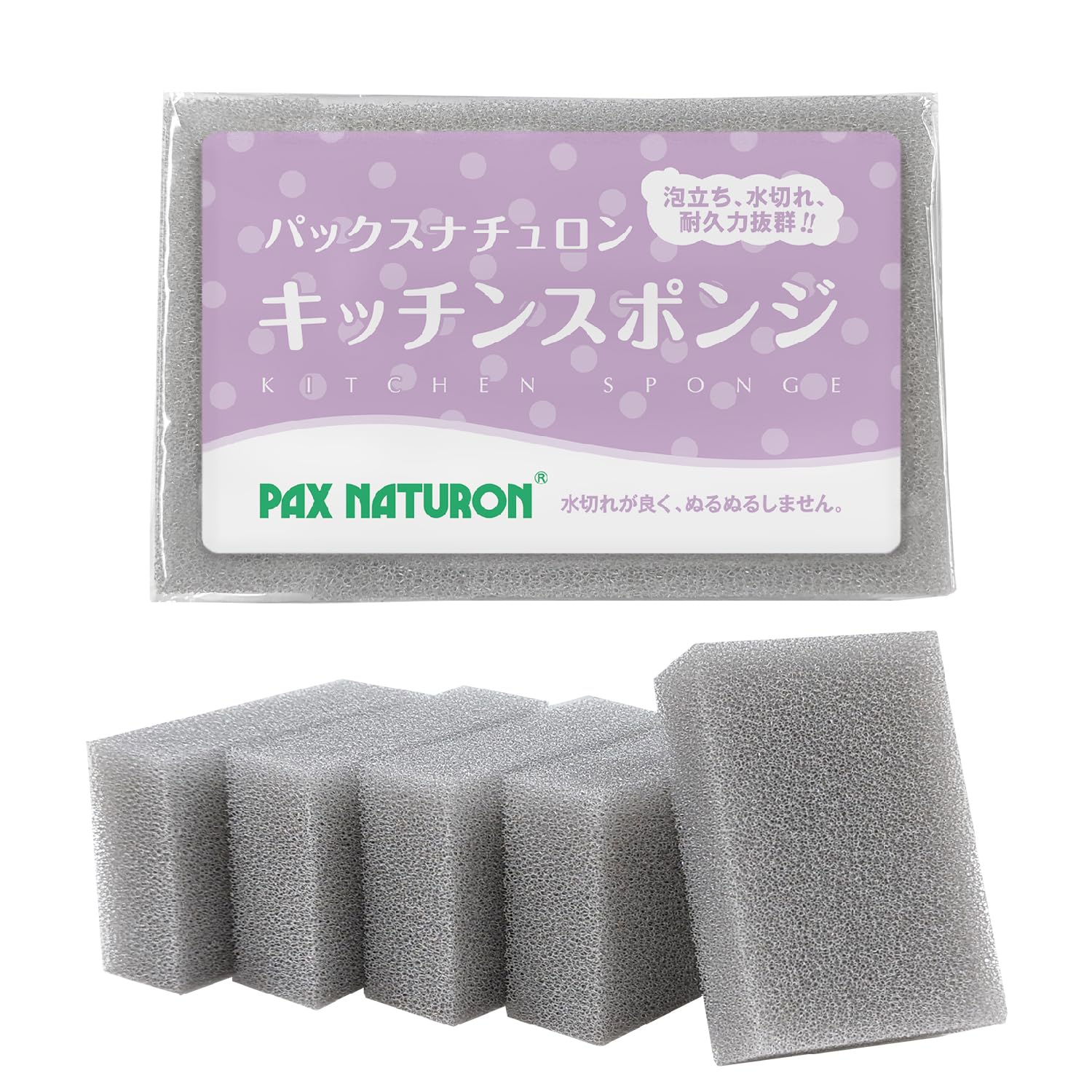 PAX NATURON(パックスナチュロン) キッチンスポンジ (グレー / 5個セット) 台所 食器洗い 皿洗い スポンジ (泡立ち/水切れ/耐久性) 太陽油脂