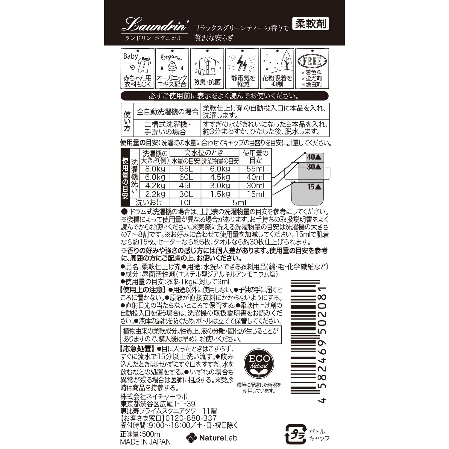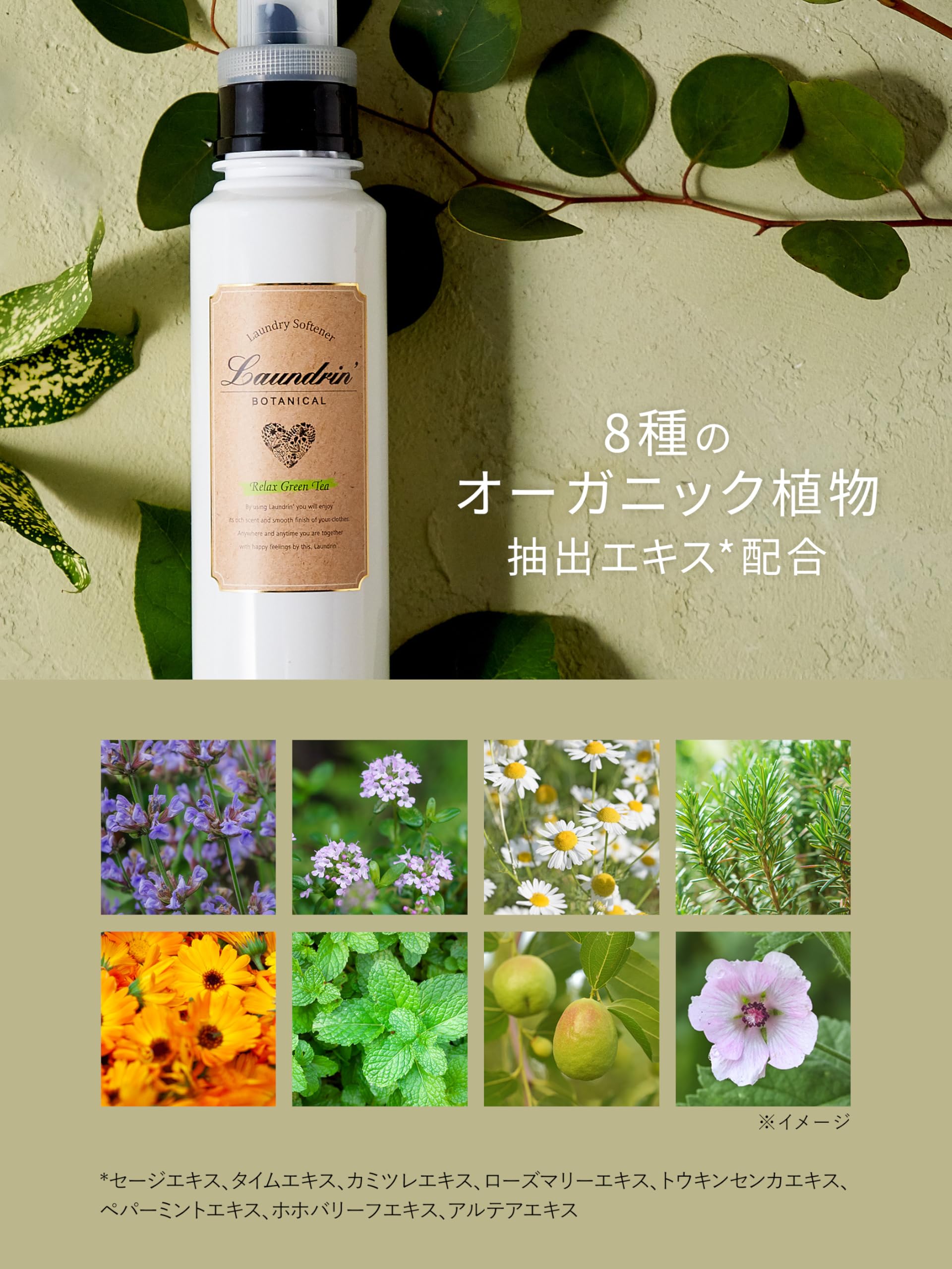 Laundrin'(ランドリン) ボタニカル 柔軟剤 リラックスグリーンティーの香り 500ml オーガニック