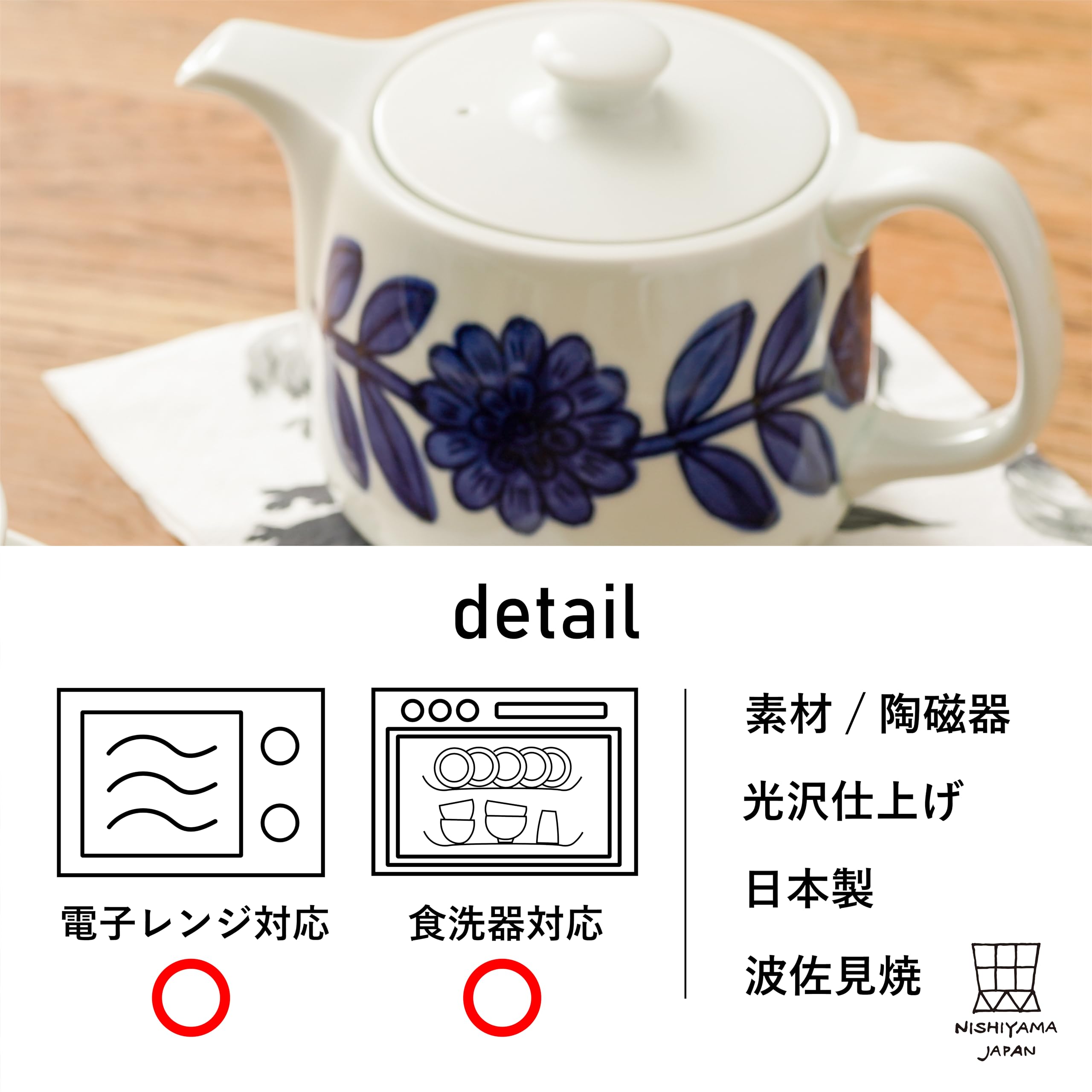 【人気】NISHIYAMA デイジー ポット S (グレー/茶こし付き / 1個) 波佐見焼 日本製 (電子レンジ対応/食洗機対応) ティーポット/コーヒーポット (陶器/急須)