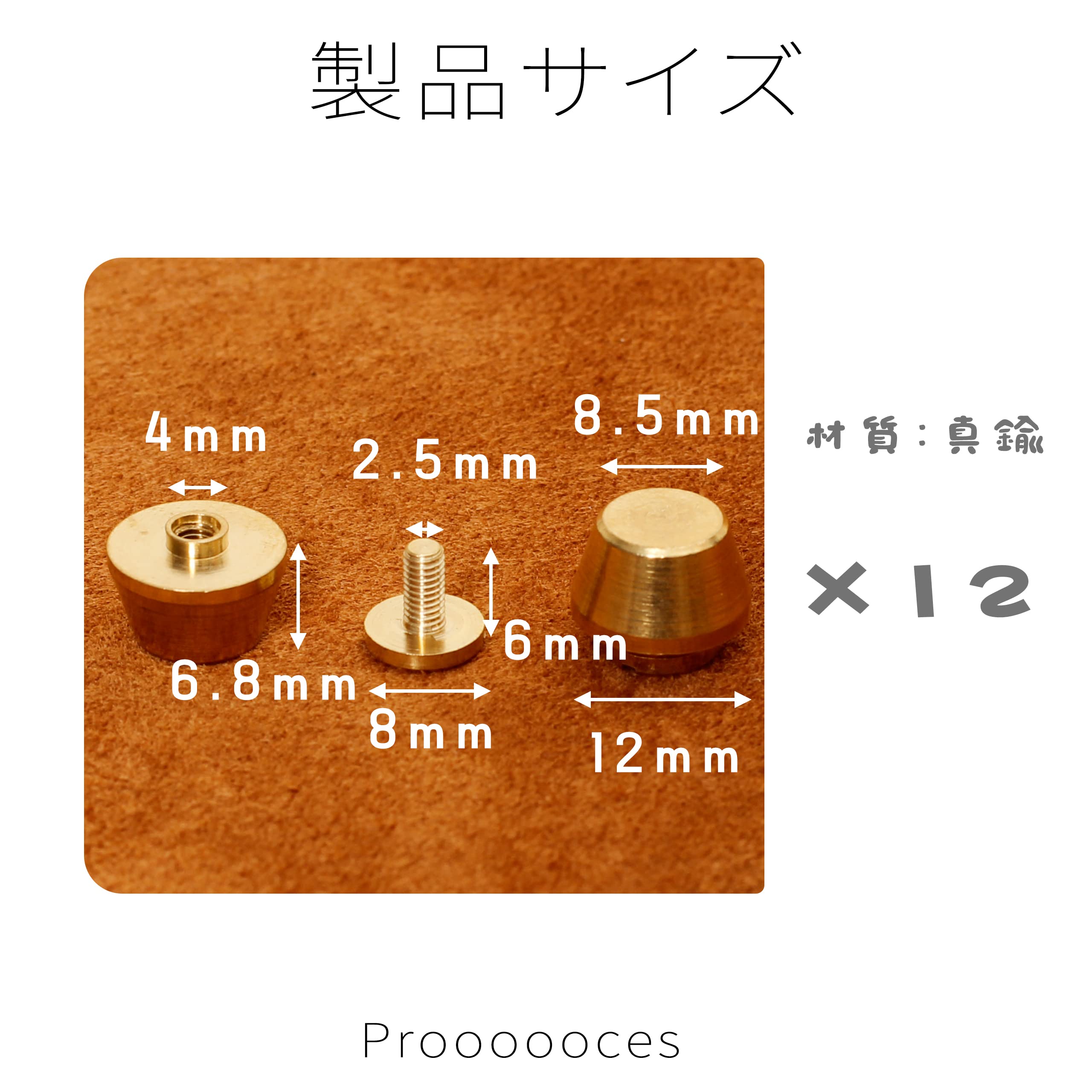 底鋲 台形型 真鍮 12個入り ネジ式 スタッズ カバン レザークラフト ネジ バッグ カバン 修理 レザークラフト ハンドメイド DIY パーツ 革 工具