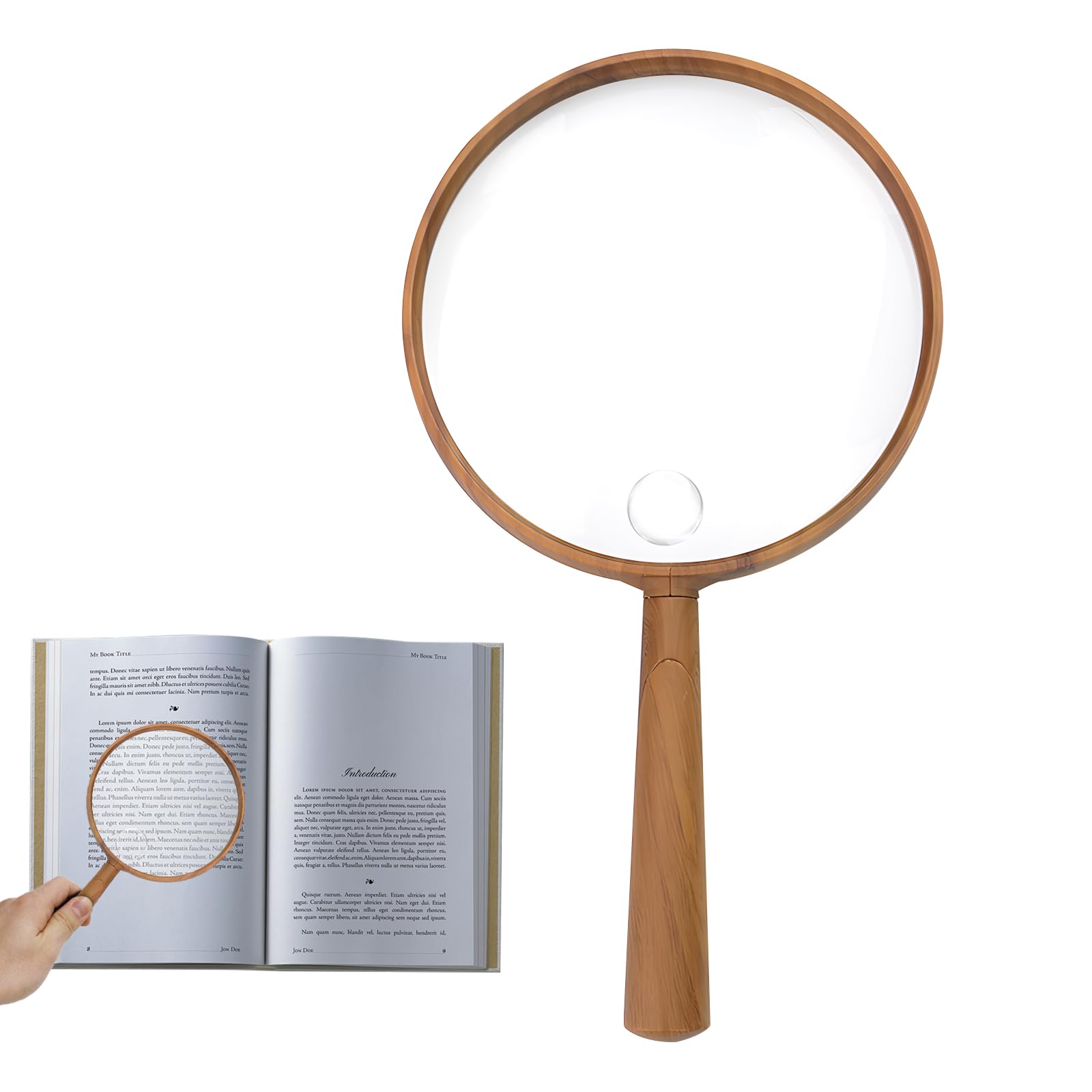 【大きくて扱いやすい】手持ち型拡大鏡はオプティカルガラスを使用しており、屈折率の高品質により、画像よりはっきり見えることです。閲覧する文字や画像が明るくくっきり見えます。拡大鏡の直径は110mmと広く閲覧可能で、ハンドル部分も持ちやすいので誰でも簡単にピント合わせができます。