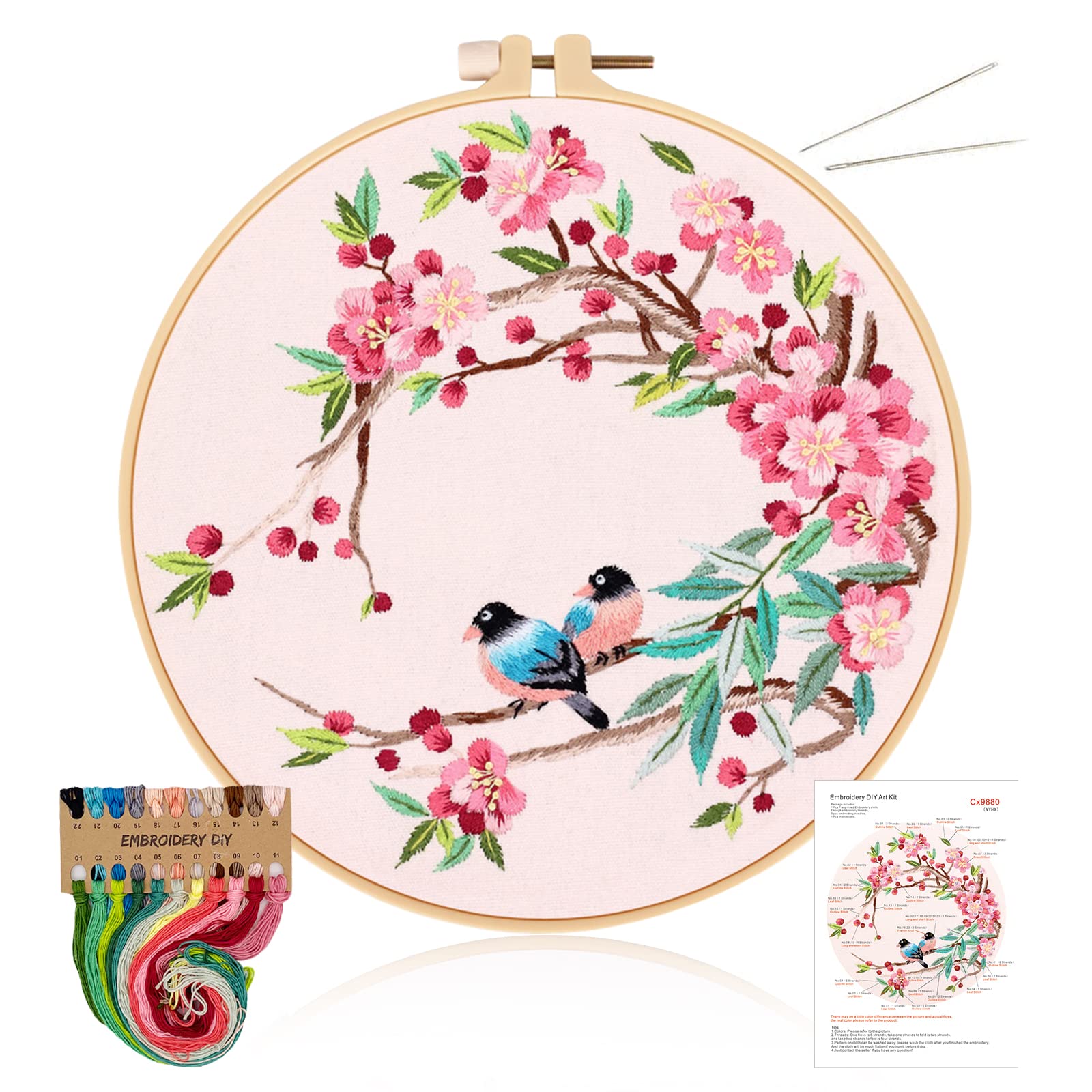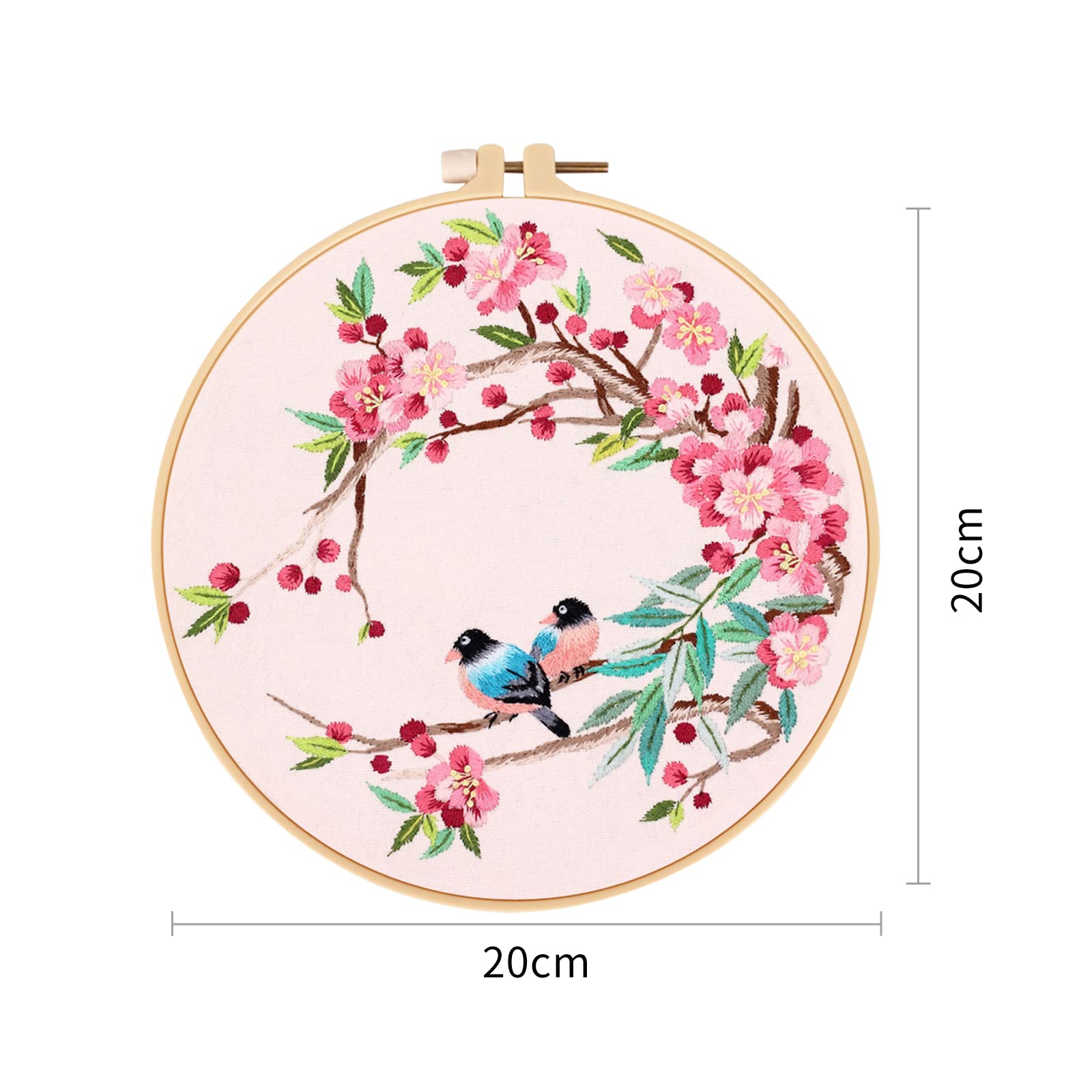 ALLMIRA 刺繍キット 初心者 セット ししゅうキット 刺しゅう クロスステッチ 手作り DIY刺繍工具 刺繍 枠 20CM1本 刺繍糸 刺繍用布1枚 刺繍針2本 英語説明書付き (鳥と花 1個入)