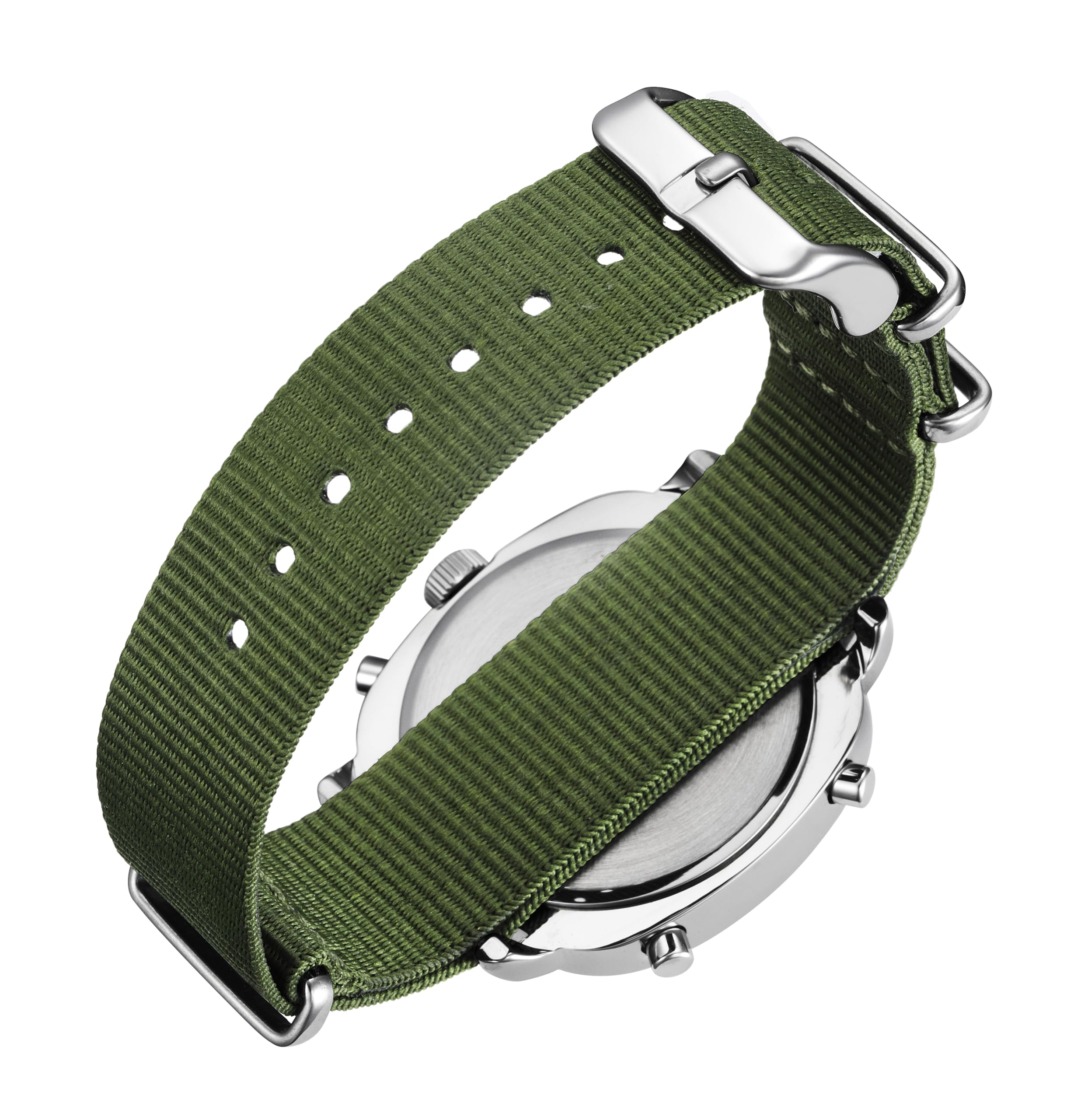 シンプルで見やすい文字板と5気圧の防水性を備えた、普段使いに最適なスタンダードな腕時計。ベルトは汚れに強く、耐久性に優れたナイロンを使用し、丈夫な仕上がりになっています。36.5ミリなので、性別問わずご使用いただけます。