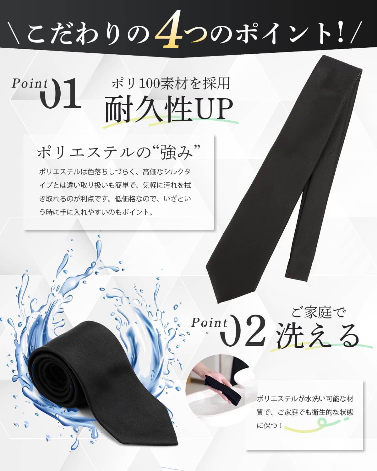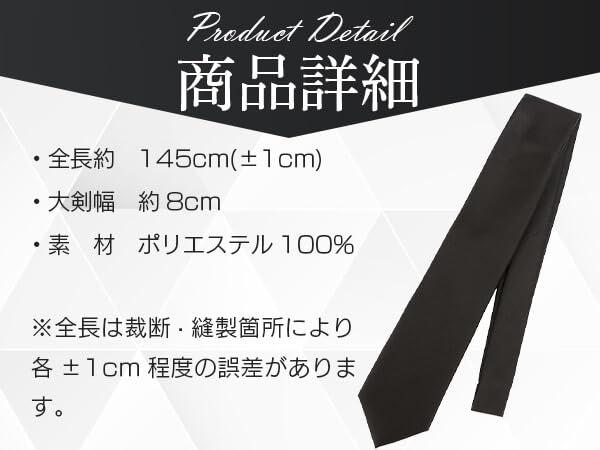 『厚労省認定 葬祭のプロが監修』厚労省認定 葬祭ディレクター1級 田中直氏がプロ監修したフォーマル黒ネクタイです。SOMOTO 葬式 ネクタイは他社製と比べ光沢が少ない黒ネクタイです。ポリエステル100%で水や汗に強く、シワになりにくい素材のため、形が崩れることが少なく、葬儀に参列する際に最適です。またネクタイの結び方や葬儀マナーの冊子を同梱しております。いざという葬儀参列においてネクタイと共にお役立ていただけます。
