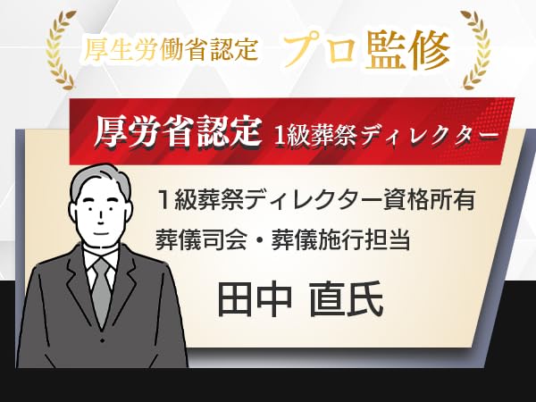 『厚労省認定 葬祭プロ監修』厚労省認定 葬祭ディレクター1級 田中直氏のお墨付きです。