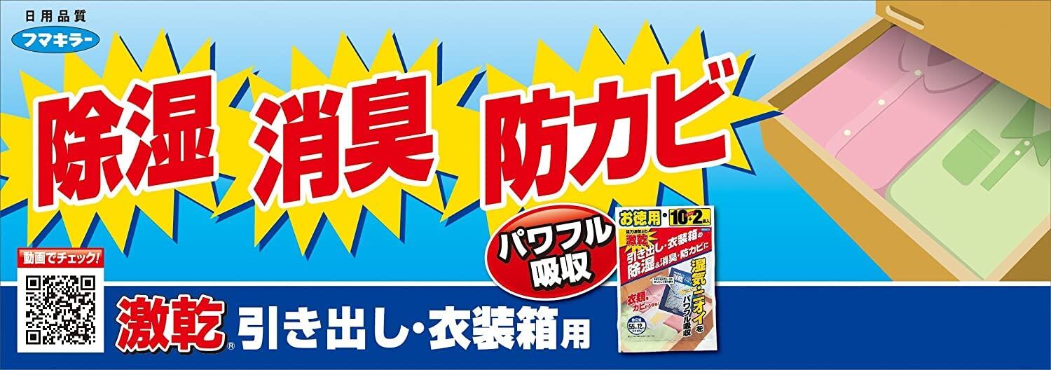 激乾 引き出し・衣装箱用 除湿・乾燥・消臭シート フマキラー 12袋入×2個 衣類さわやか カビ対策 取替え時期がはっきりわかる 徳用【まとめ買い】