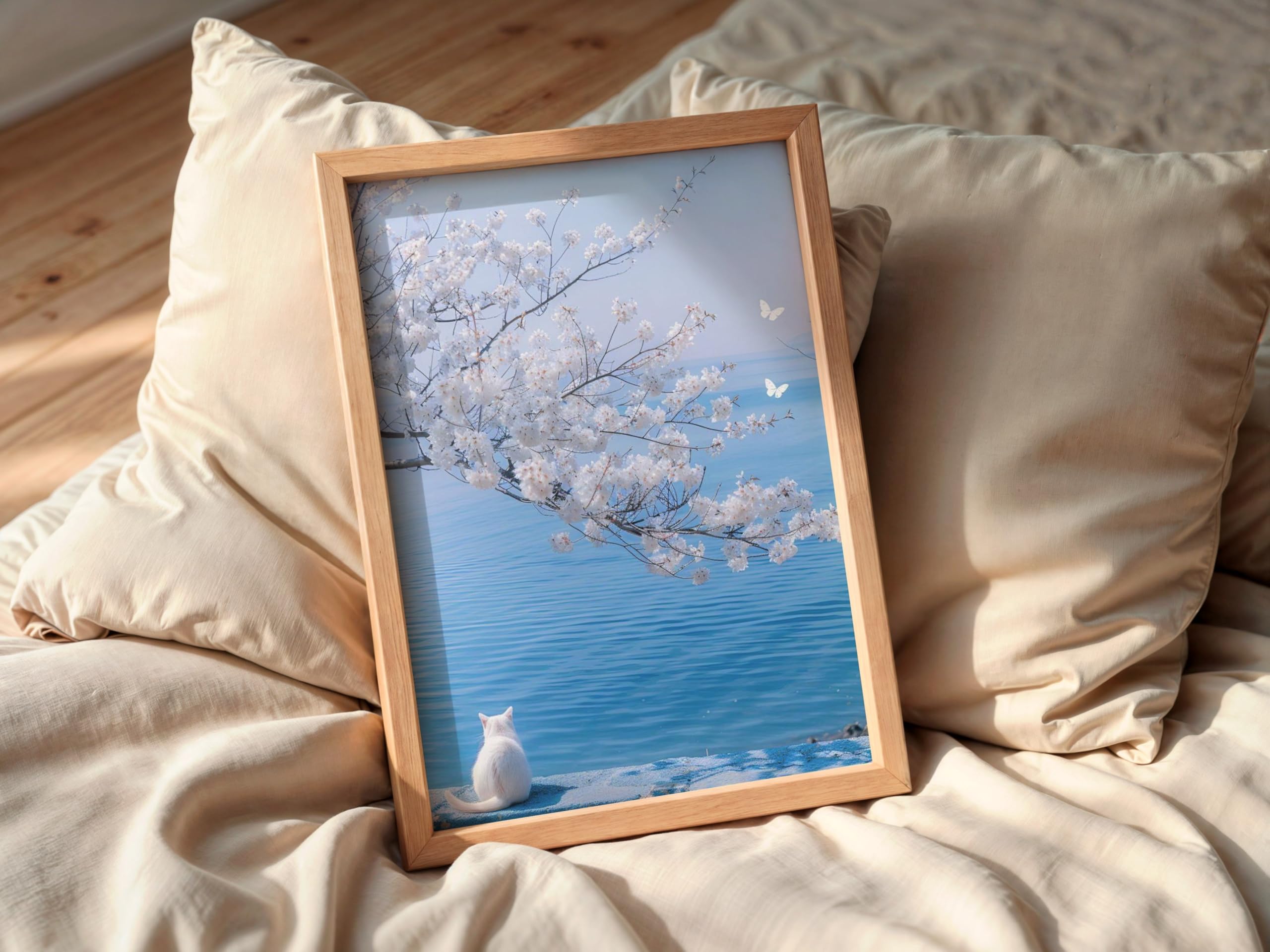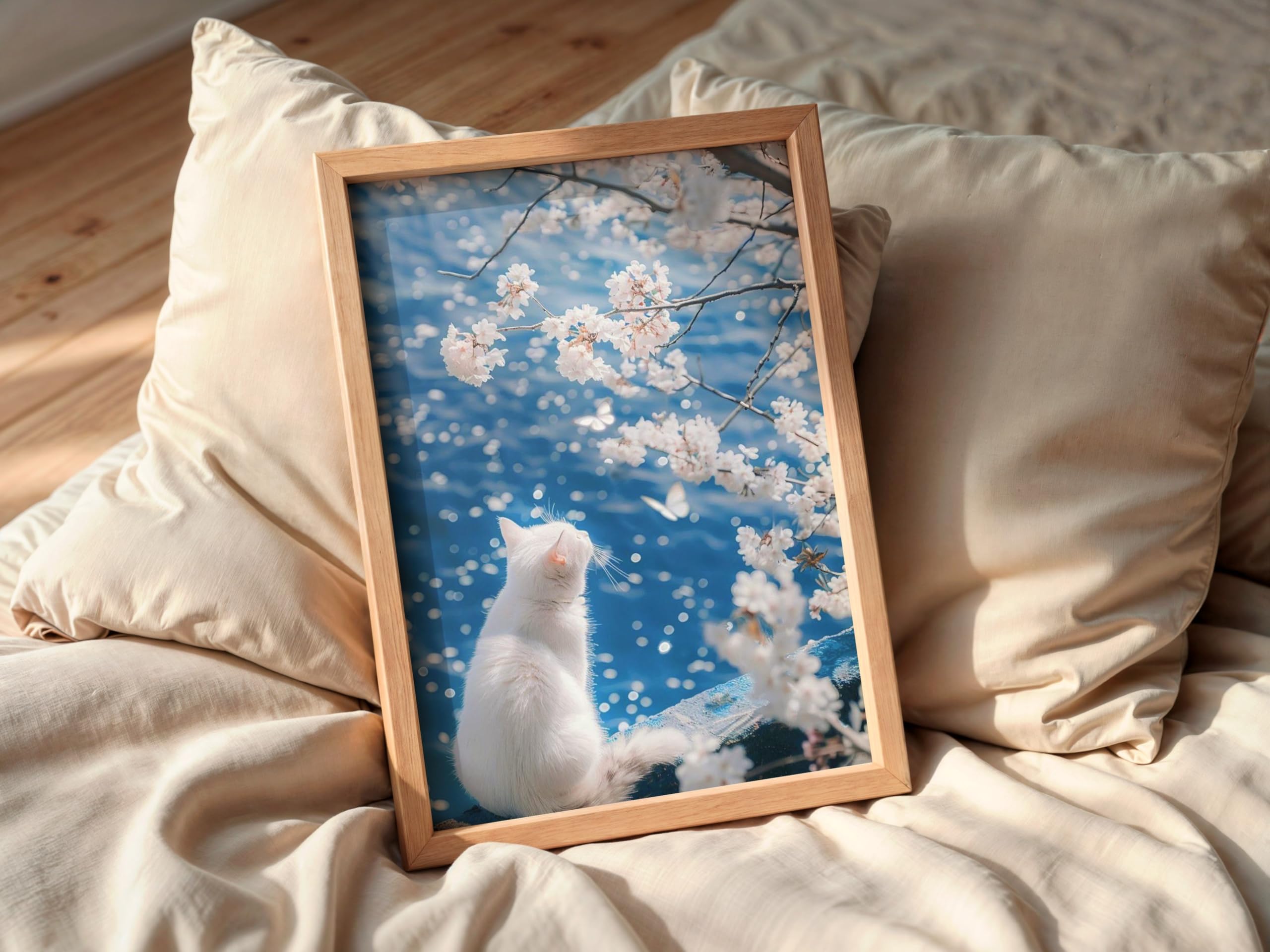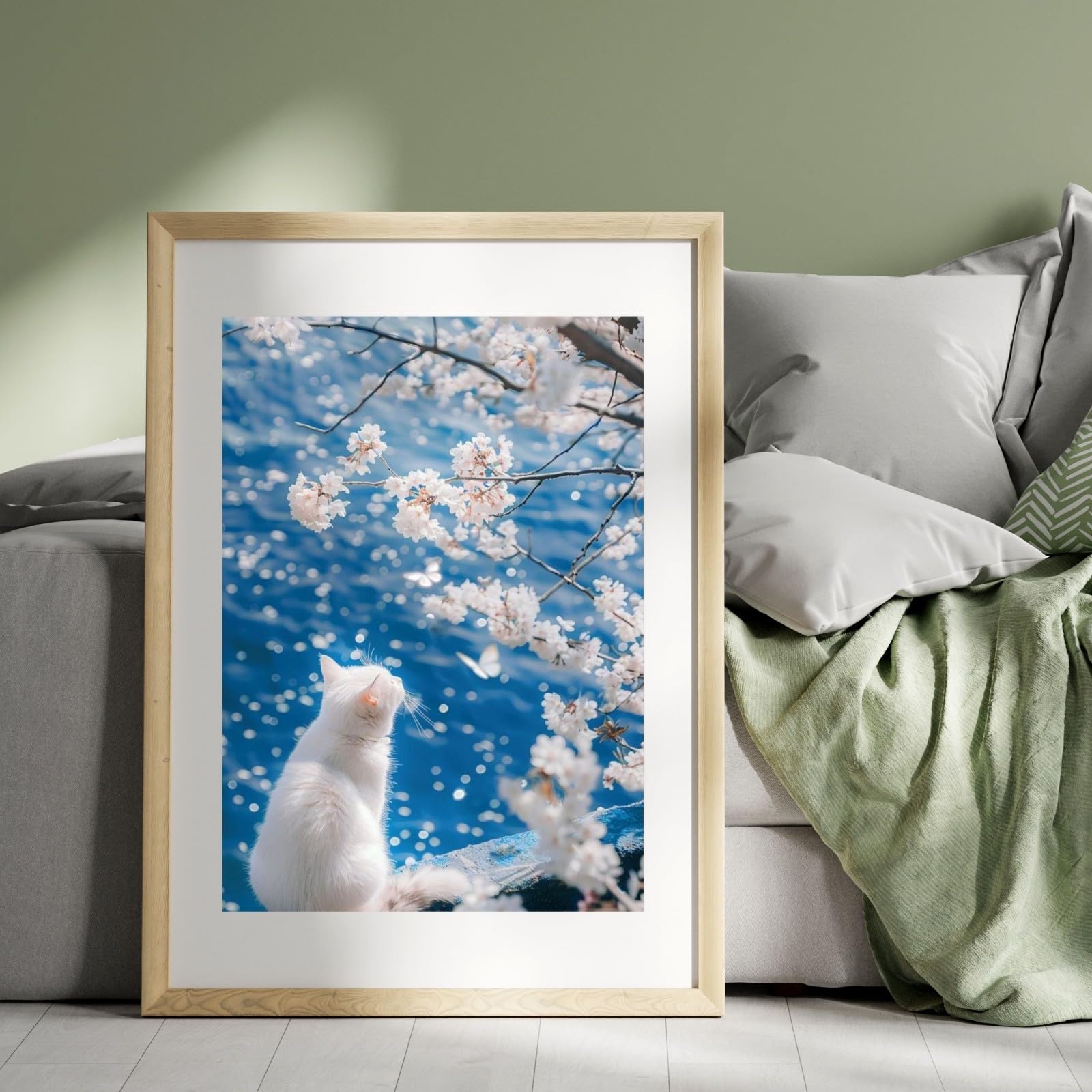 ダイヤモンドアート キット5D モザイクアート全面貼り付け タイプ DIY 刺繍キット大人の子供 手作り ダイヤモンド塗装家の壁の装飾 (白い桜猫)