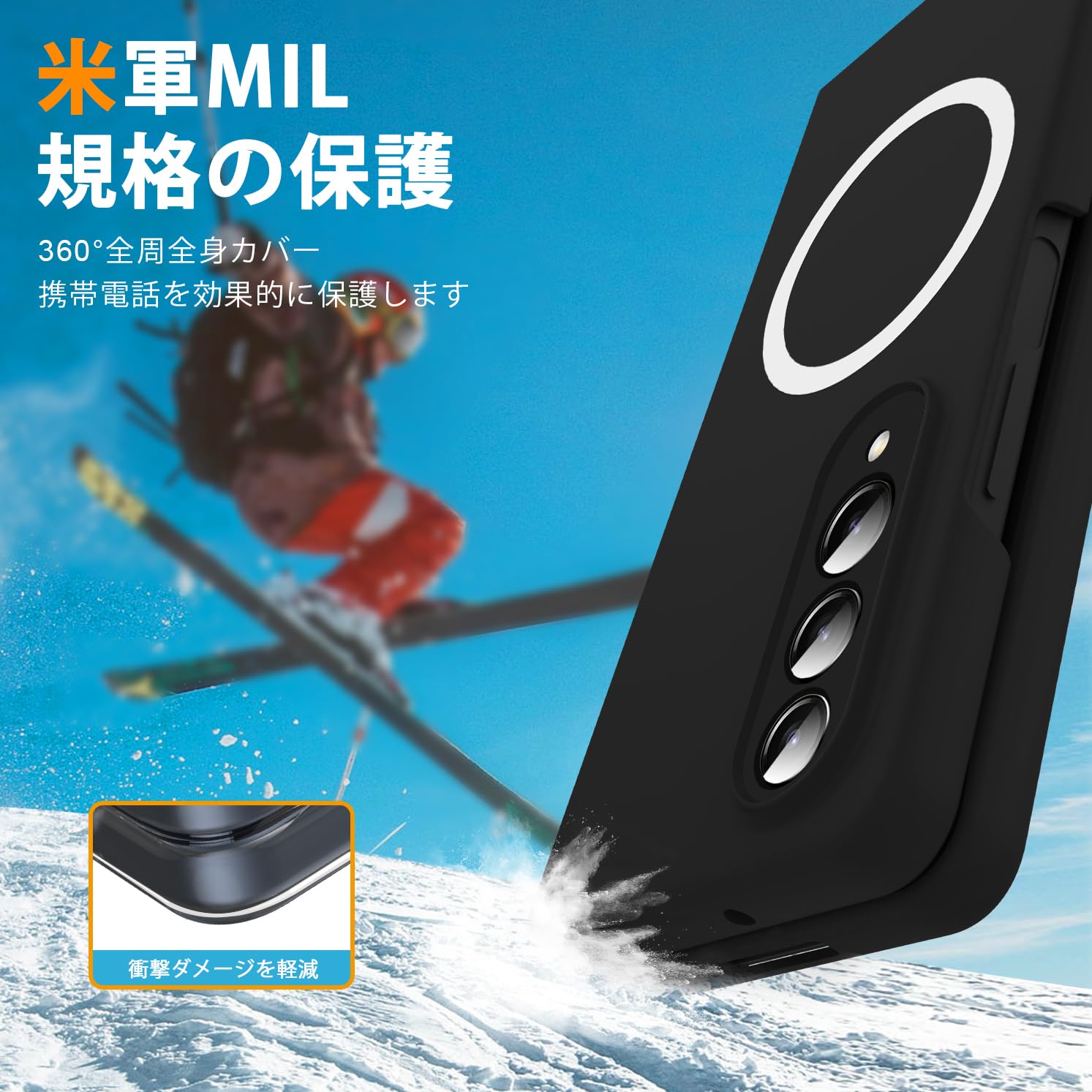 Galaxy Z Fold5用 ケース 耐衝撃 薄型 カバー 軽量 Galaxy Z Fold5 専用 ハード ワイヤレス充電対応 レンズ保護 着脱簡単 PC素材 サムスン ギャラクシー Z フリップ5 SC-54D / SCG23 対応 携帯ケース (黒)9-Z Fold 5-11