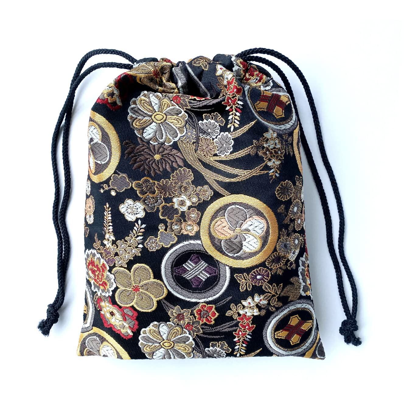 御朱印帳袋 【紋花 黒】 御朱印帳入れ 19×26㎝ 小物入れ 御朱印帳 袋 巾着 巾着袋 日本製 金襴 京都 金らん 西陣織