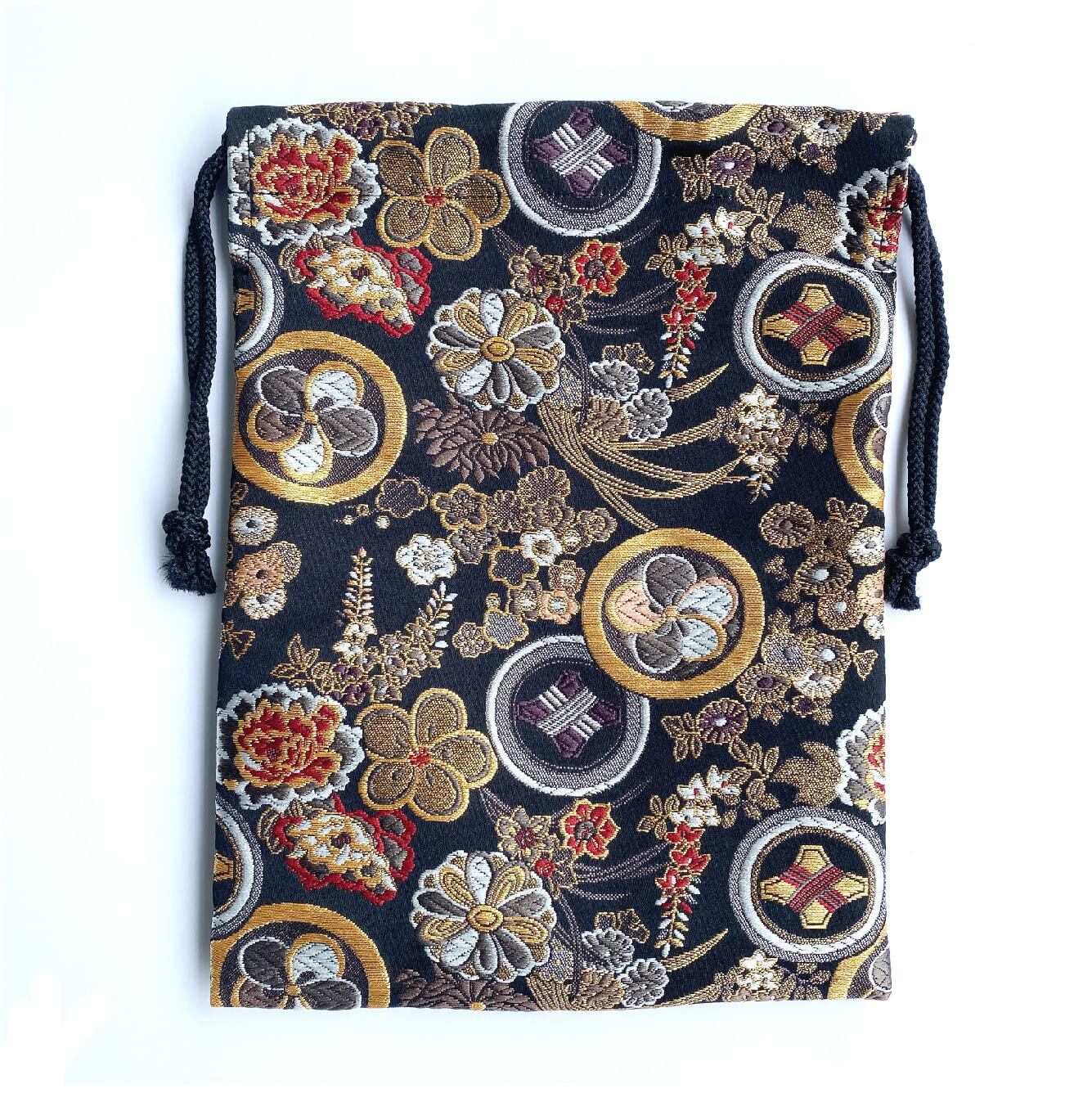 【努力特価】御朱印帳袋 【紋花 黒】 御朱印帳入れ 19×26㎝ 小物入れ 御朱印帳 袋 巾着 巾着袋 日本製 金襴 京都 金らん 西陣織