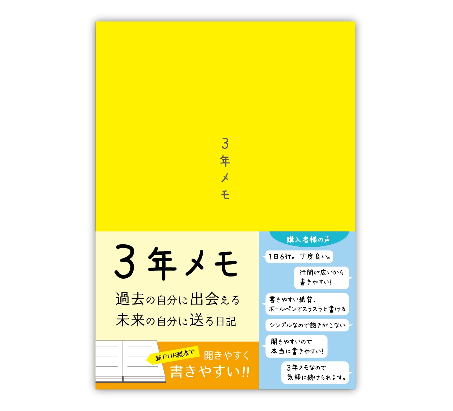 【特価処分】ノートライフ 3年メモ 日記帳 a5 (21cm×15cm)日本製 3年日記 ソフトカバー 日付あり (いつからでも始められる イエロー)