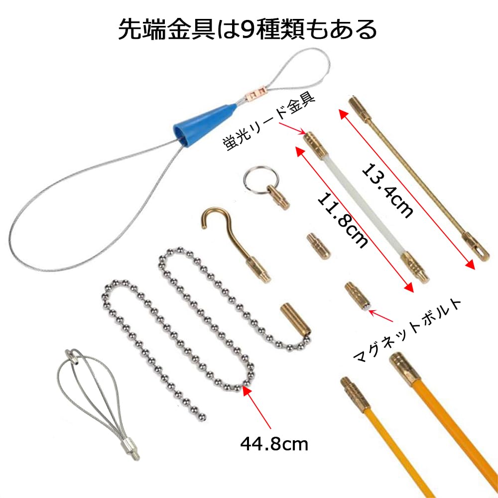 【人気】FANAHOKO通線ロッド 通線ワイヤー 1m φ4mm*10本 ケーブル索引具 先端金具9種類付き 収納ケース付き